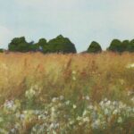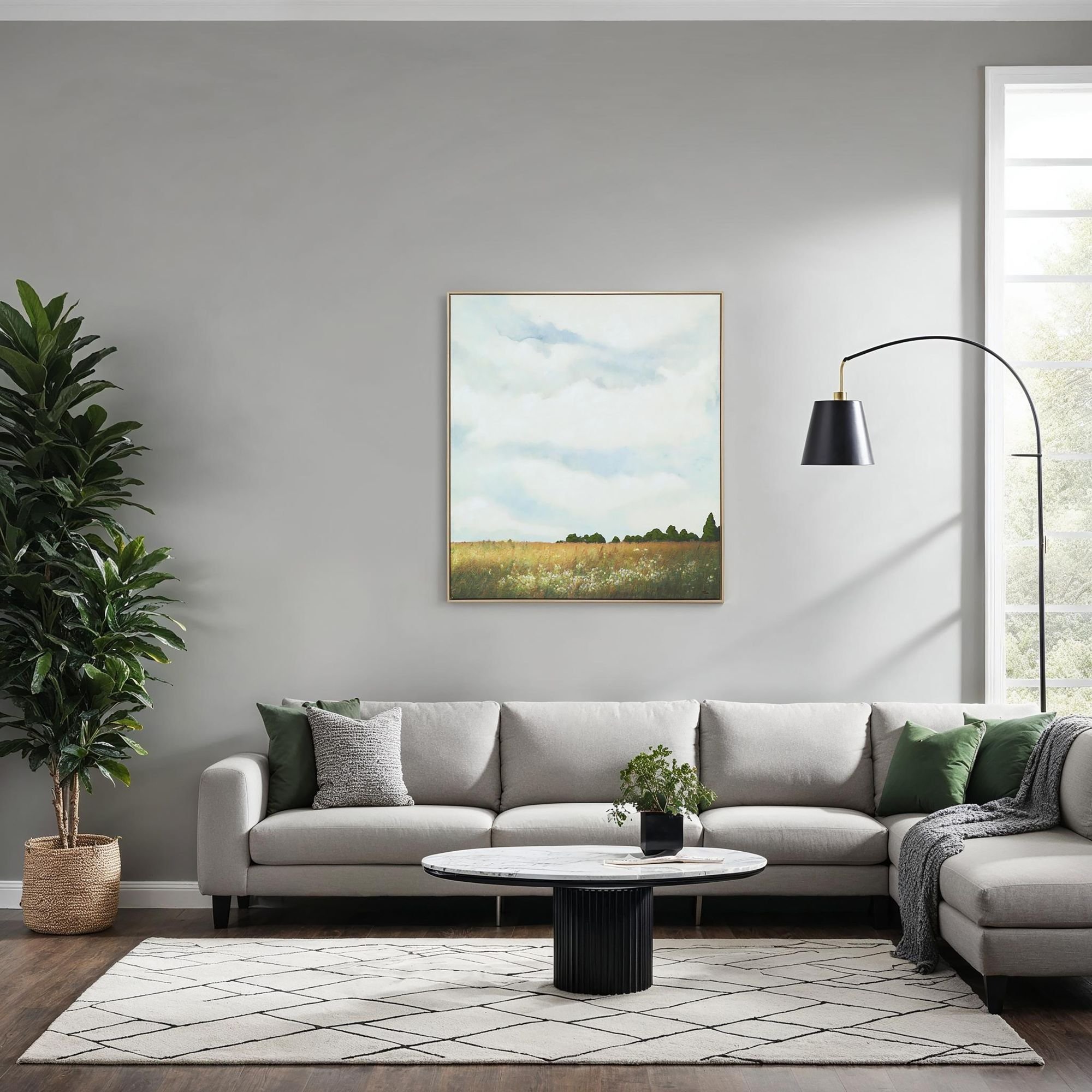 Elevate any interior with the touch of nature embodied by this beautiful landscape painting. Artfully embellished with hand-painted accents, its richly hued shades of green and soft blue join in a harmonious meeting of land and sky to create an eye-catching focal point in any room. Wrapped in a new bleached wood-finished frame, this wall art is ready to impress.