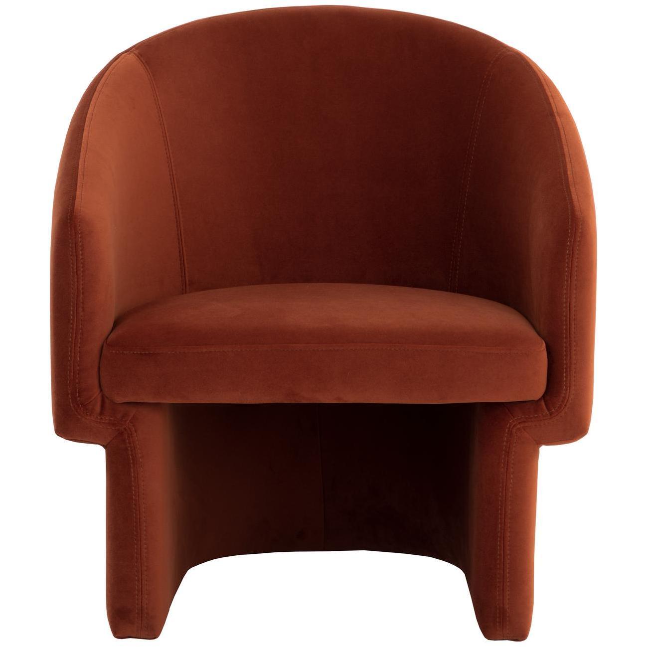 Make a statement with this contemporary lounge chair crafted in Vietnam. Features a modern barrelback seat in meg rust fabric. A perfect addition to living, lounge and lobby environments.