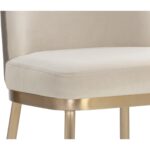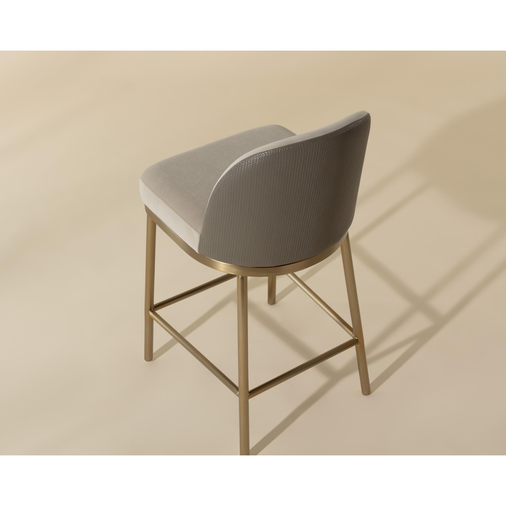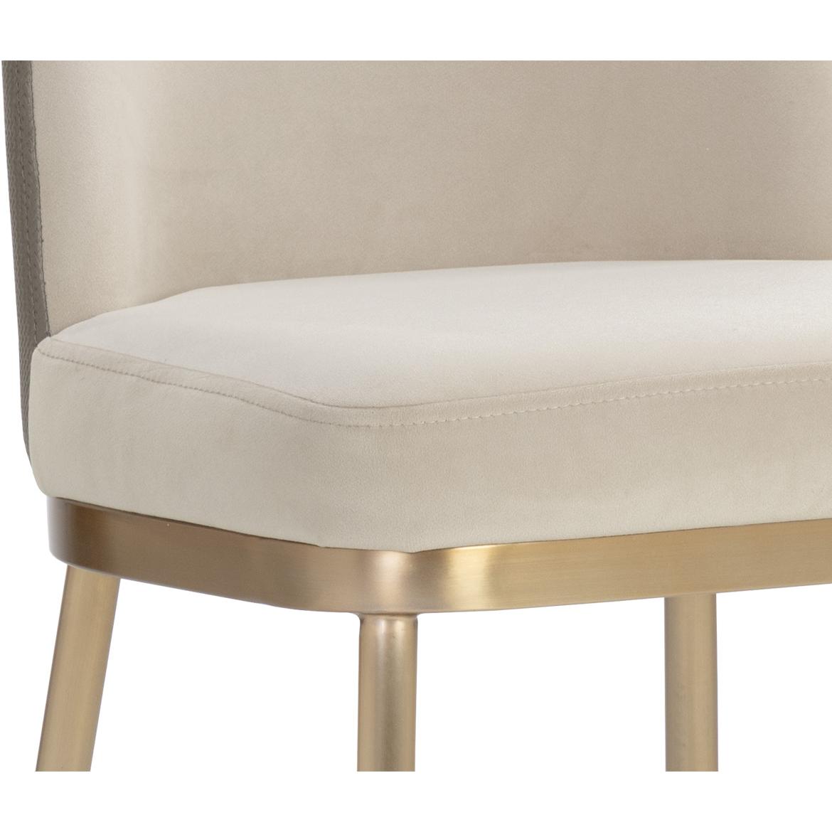 The minimalist frame of the Lavania Counter Stool is brought to life with an exquisite combination of two toned fabrics. Expertly upholstered with soft meg taupe fabric on the seat and interior while textured porcini taupe faux leather adds a tactile touch to the back exterior. The design is complemented with powder-coated antique brass stainless steel. Handle With Care: This design has been crafted with faux leather. Faux leather is manufactured to reflect the natural characteristics of leather; as such, colour variations, markings, wrinkles, grooves, and light scratches are appreciated characteristics. No two pieces will be alike. Visit our Product Care page for more information on how to ensure the lasting beauty of this piece.