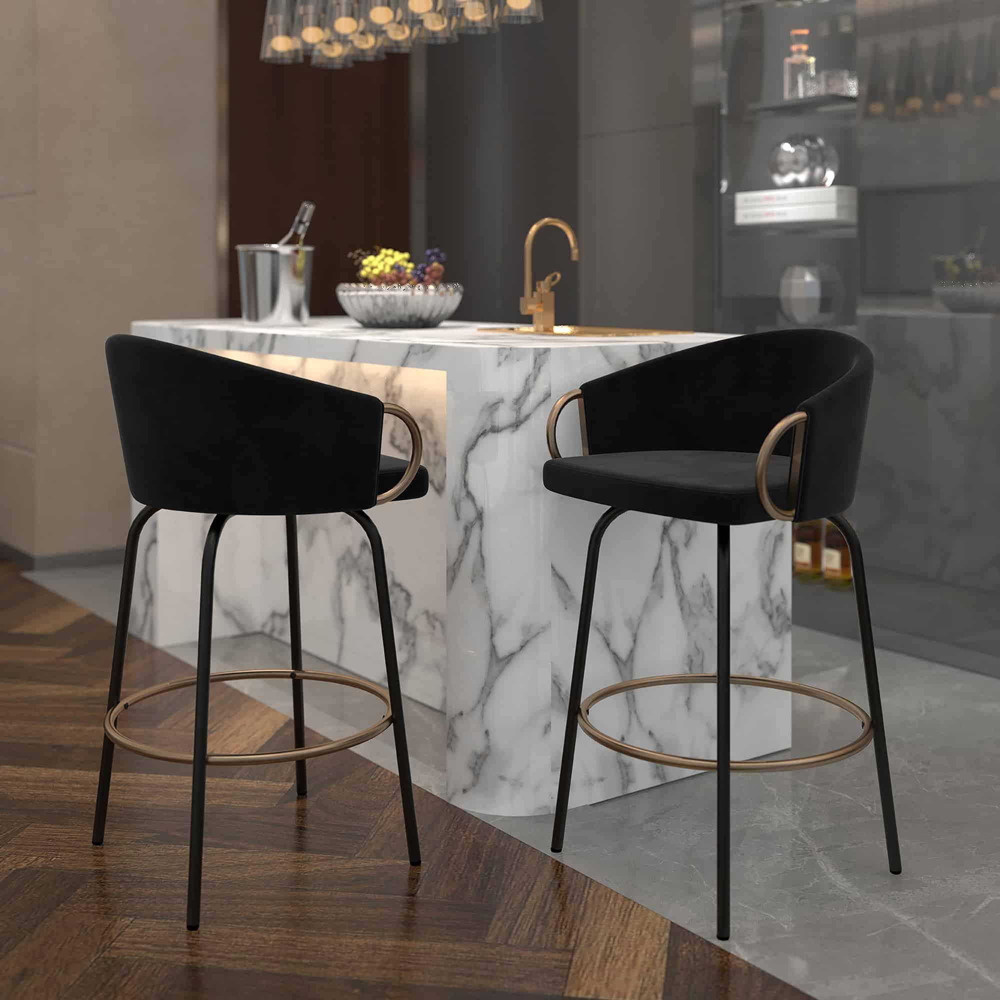Lavo 26″ Counter Stool, Set of 2 in Black and Gold