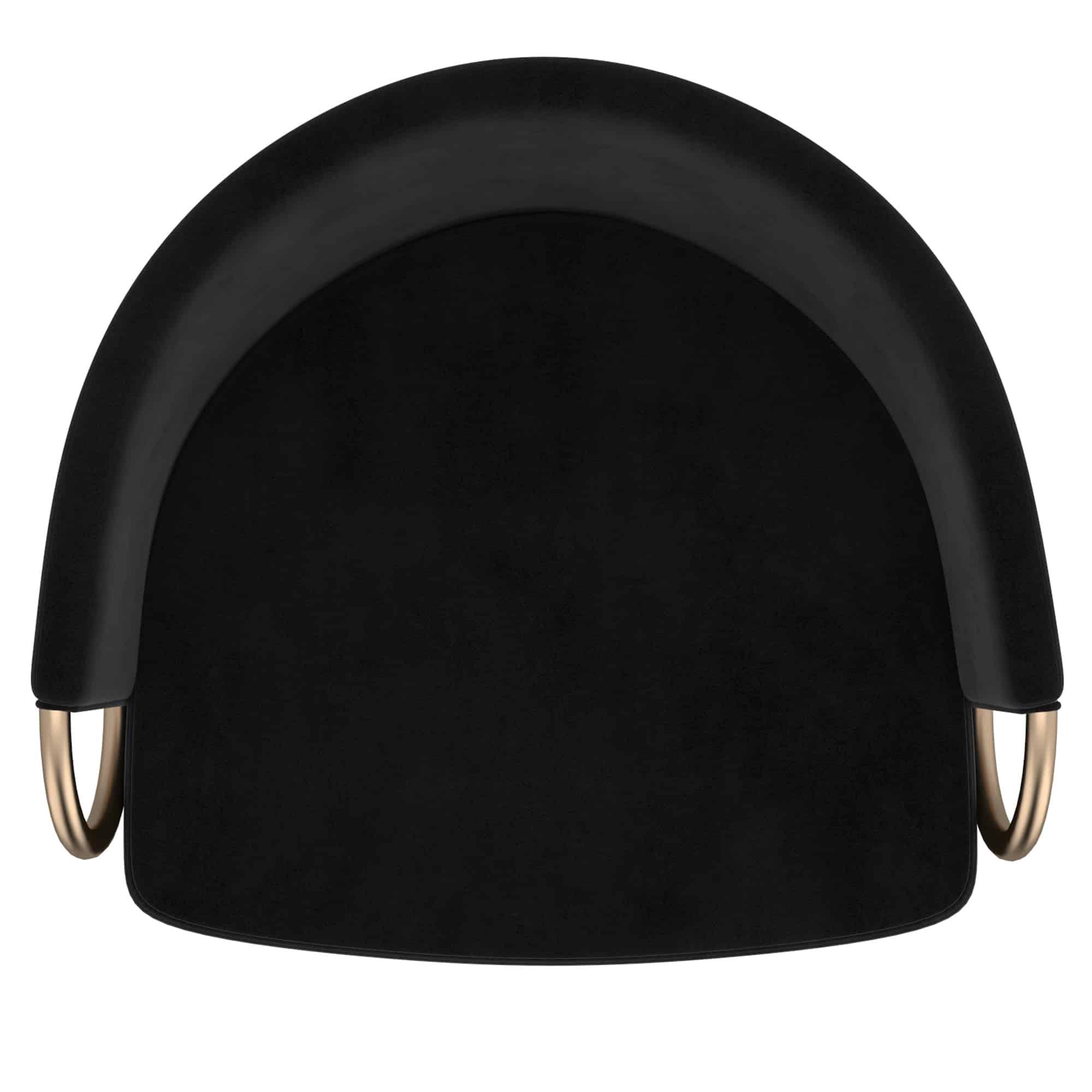 - Black metal legs with aged gold footrest and aged gold accent on arms