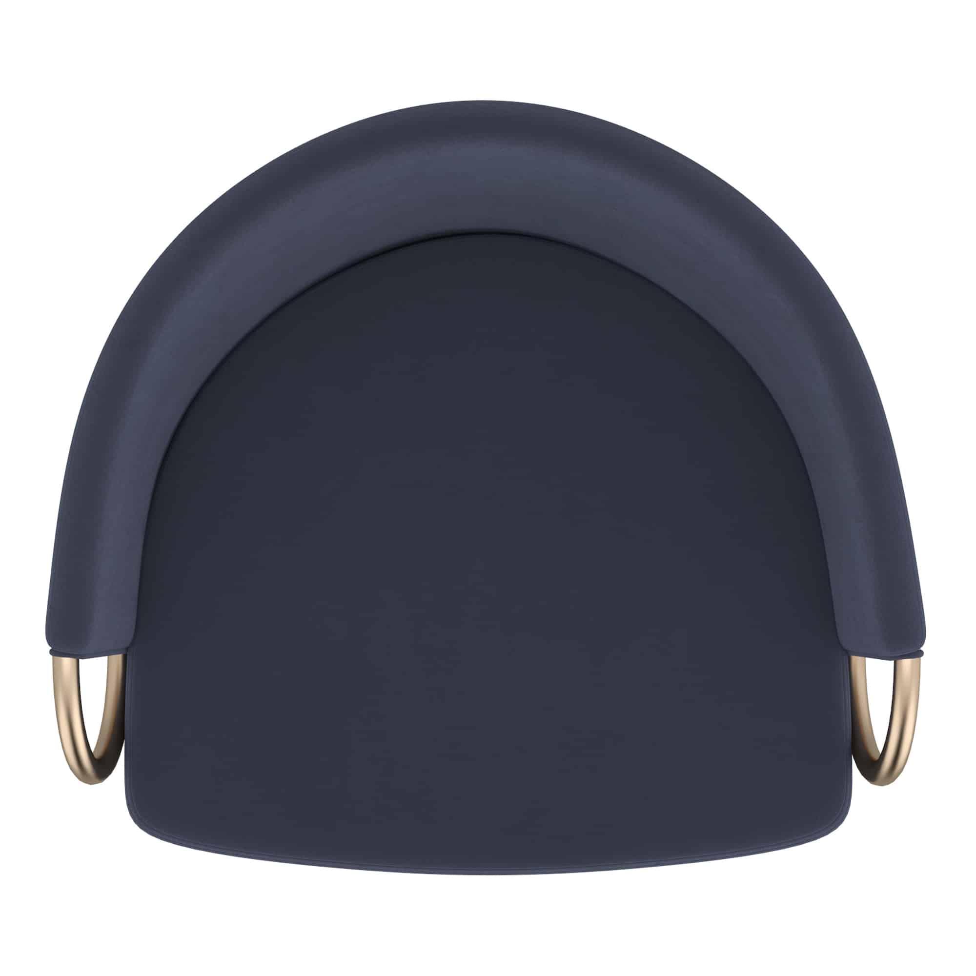 - Bucket-style seat with high back and arms and velvet upholstery