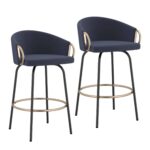 Lavo 26″ Counter Stool, Set of 2 in Blue and Black and Gold