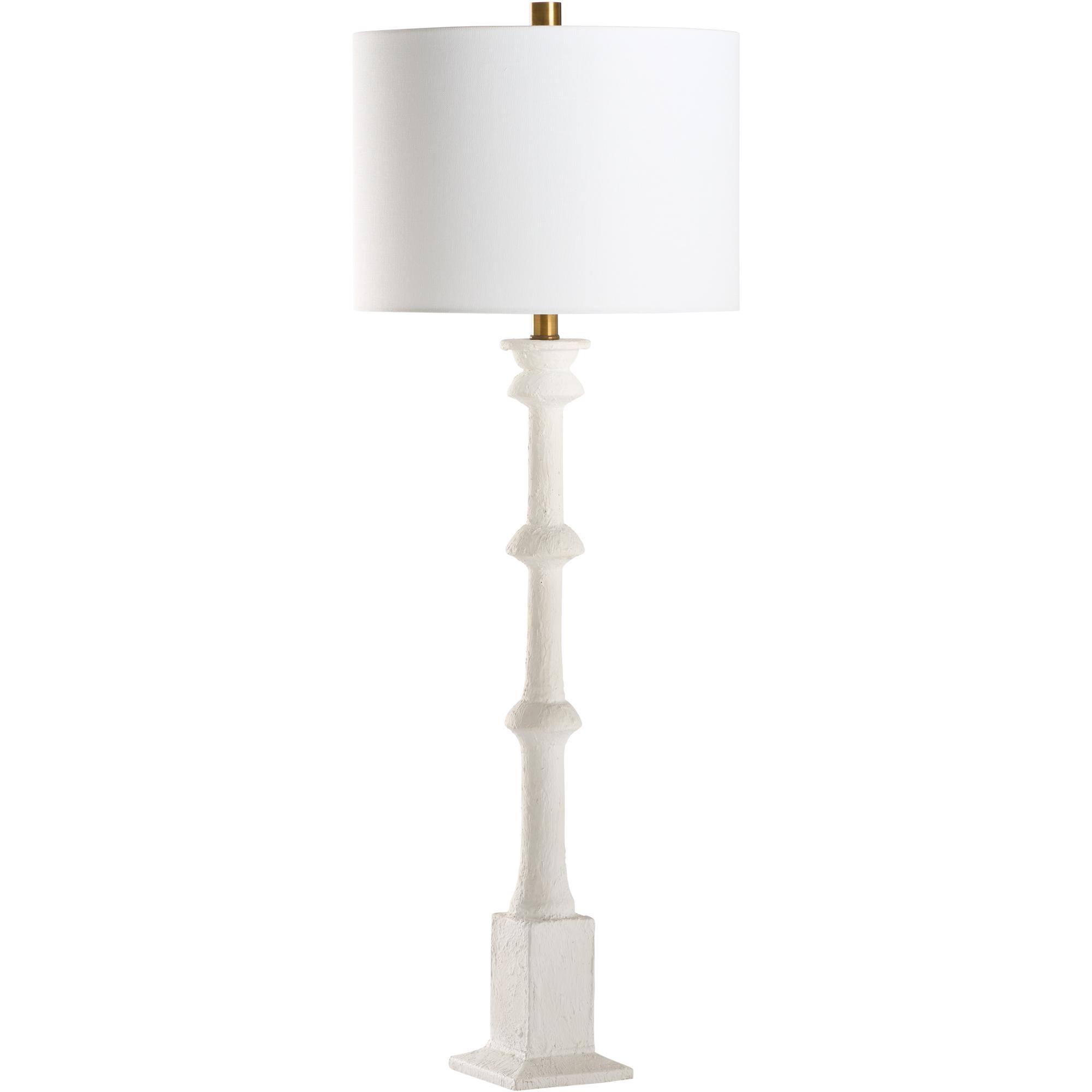 With a tall, statuesque form and a plaster-like white finish, this lamp evokes the elegance of classical sculpture. Its textured surface and graceful silhouette bring an artful, gallery-inspired presence to any interior.
