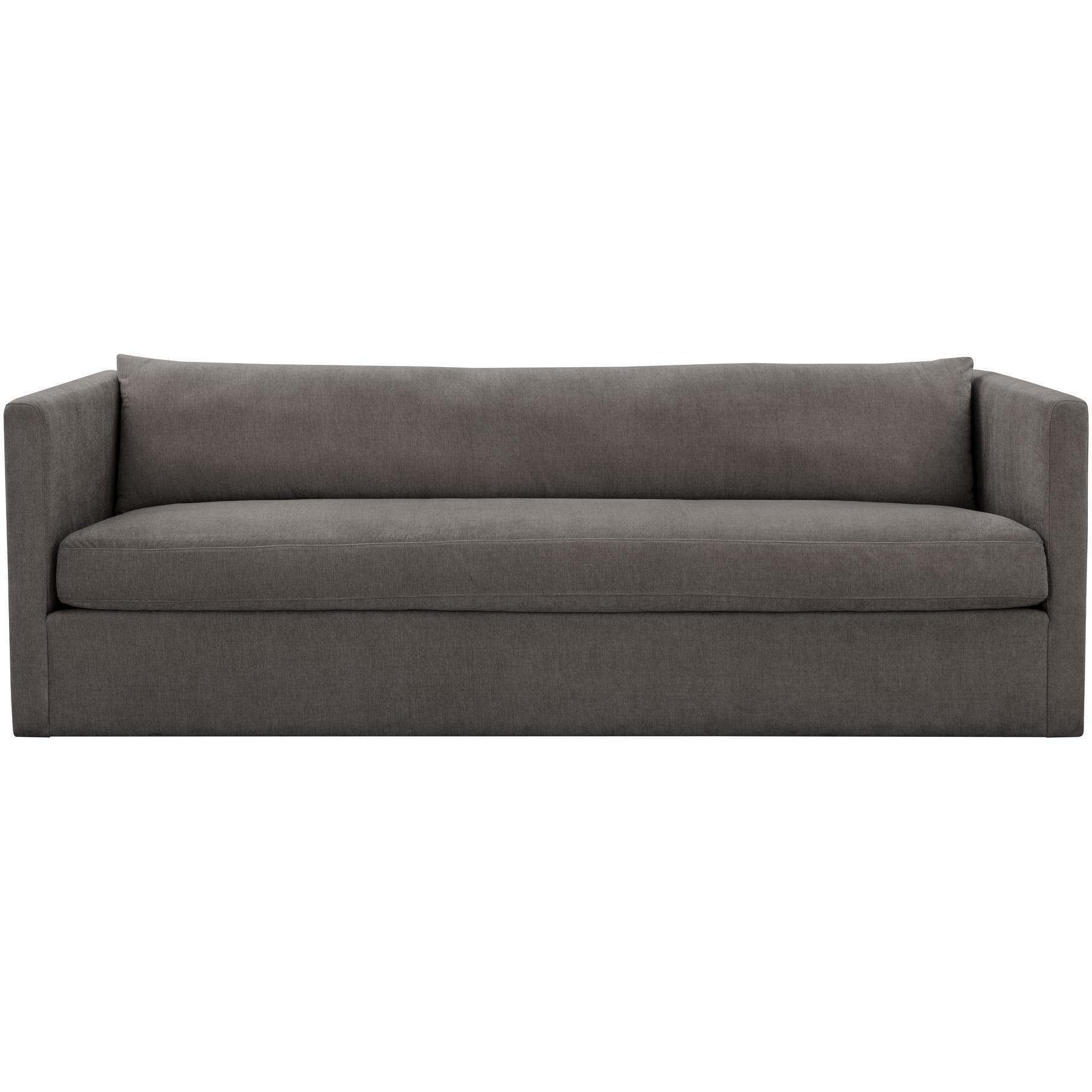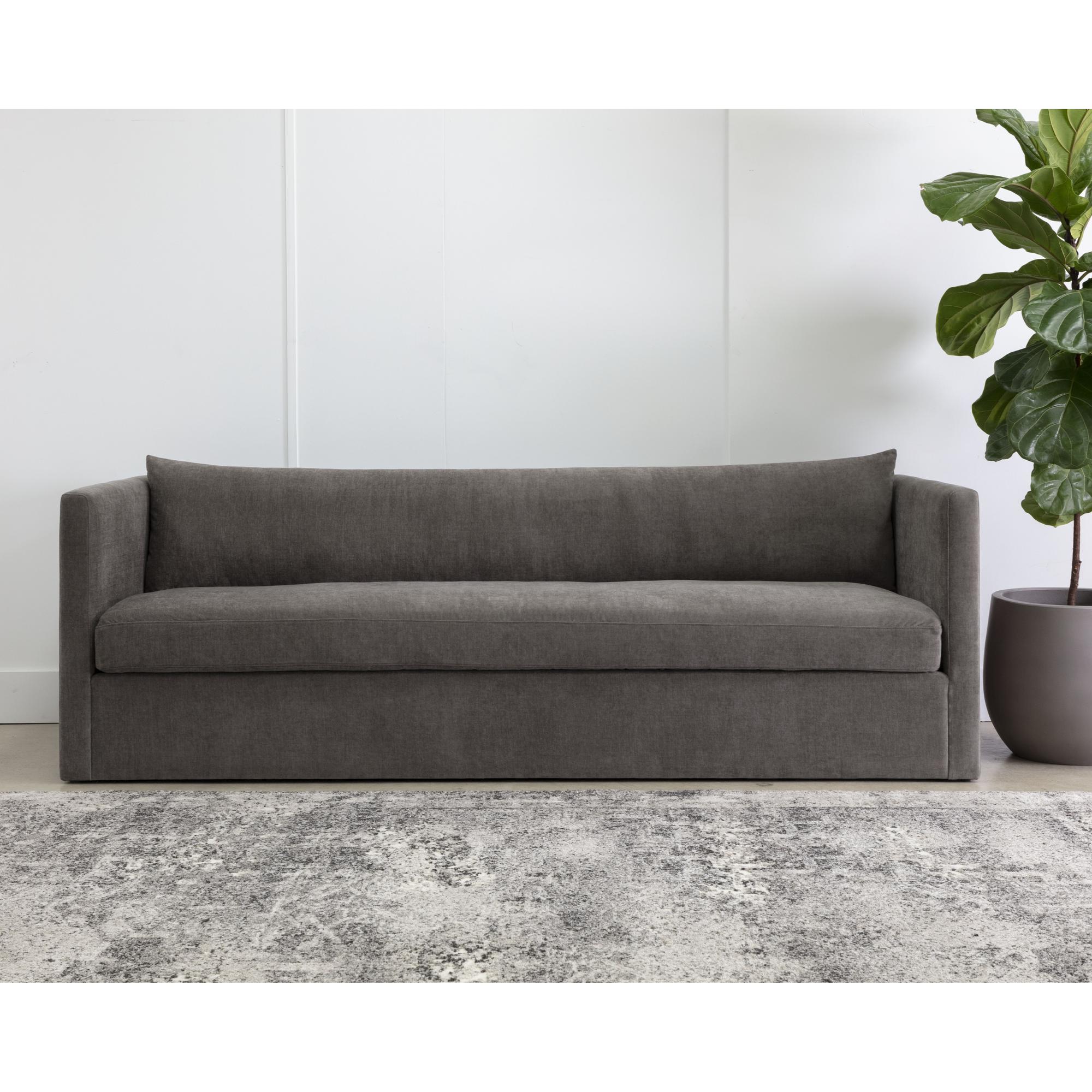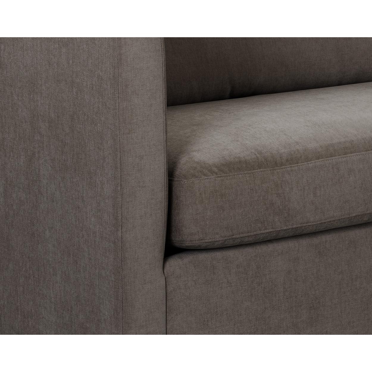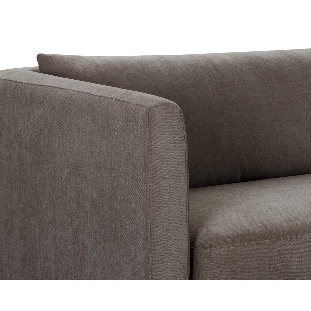 This luxurious sofa puts comfort at the forefront with its clean-cut modern design. Upholstered in danny dusty brown and cream fabrics. Completed with subtle curves and ample padding. As this piece features cushions filled with a mix of feathers and foam, occasional fluffing is required to maintain its lasting comfort and beauty.