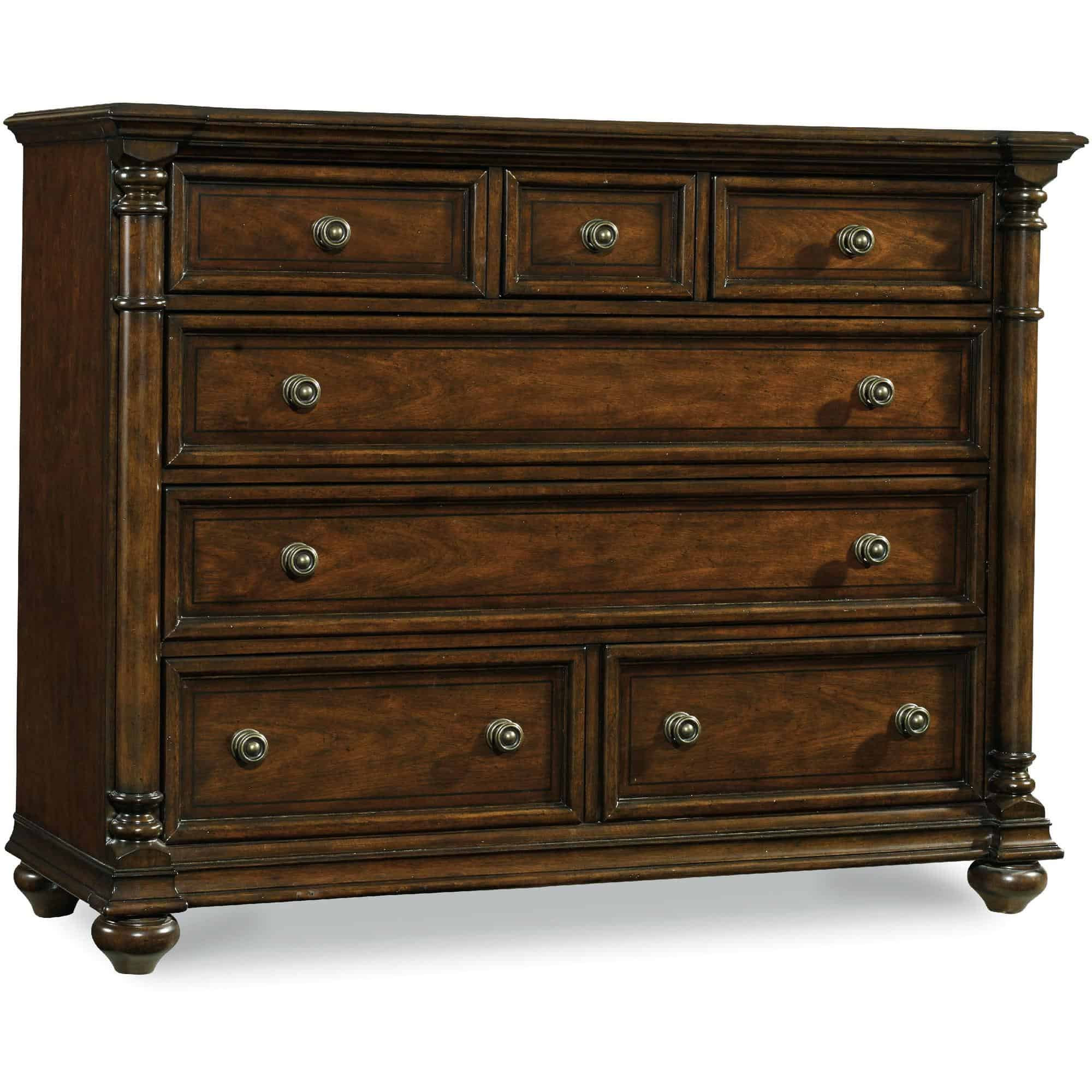- Finish: Leesburg features a rich, traditional mahogany finish with elegant cathedral and swirl mahogany veneers with light physical distressing. Custom-designed knobs and rosettes with an antique brass finish add distinction to Leesburg. Distressing includes worm holes.