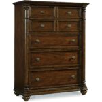 Finish: Leesburg features a rich, traditional mahogany finish with elegant cathedral and swirl mahogany veneers with light physical distressing. Custom-designed knobs and rosettes with an antique brass finish add distinction to Leesburg. Distressing includes worm holes.