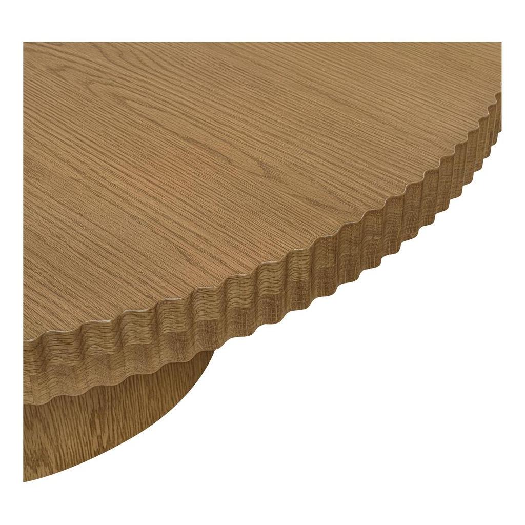 - Bold silhouette: Round tabletop with substantial thickness and scalloped edge creates strong visual presence, making it a focal point in any dining space.