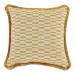 - Tonal dense fringe trim complements the bold geometric pattern fabric