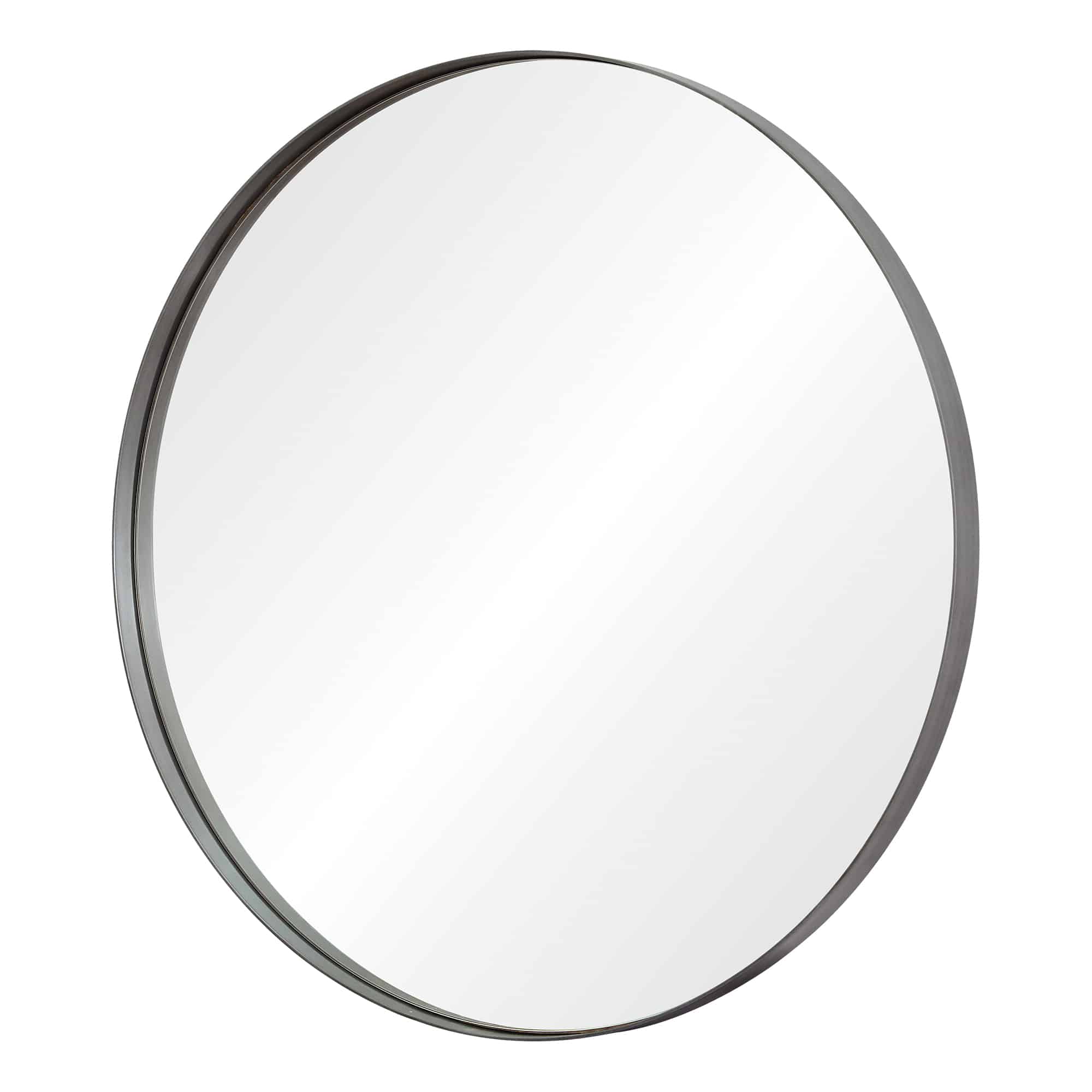 The sleek Scandinavian profile of this round wall mirror is elegant and understated. The oval mirror features an antique brushed silver finish that adds a subtle shimmering patina to the iron frame. The curvature of the circular mirror shape disrupts the linear angles of traditional architecture, with a rounded format that’s designed to inspire.