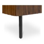 A tribute to clinker-built sailboats and the idyllic days spent sailing, the Lincoln media cabinet finds beauty in the old-world charm of clinker craftsmanship by featuring design elements reminiscent of this traditional building style. This piece showcases overlapping wooden panels across its front. .