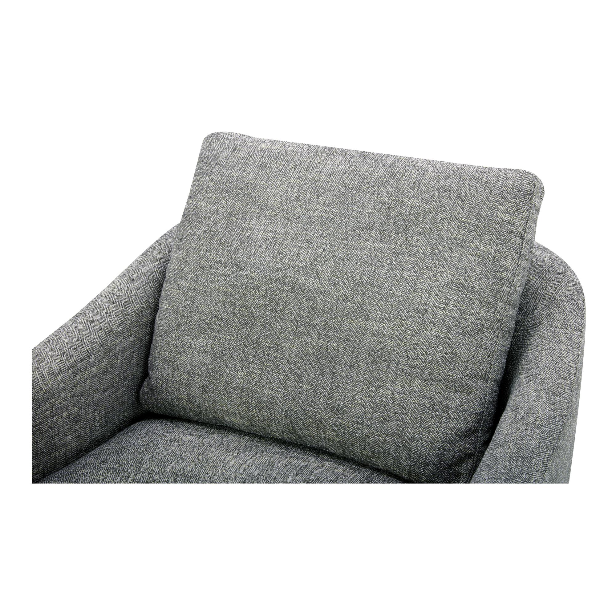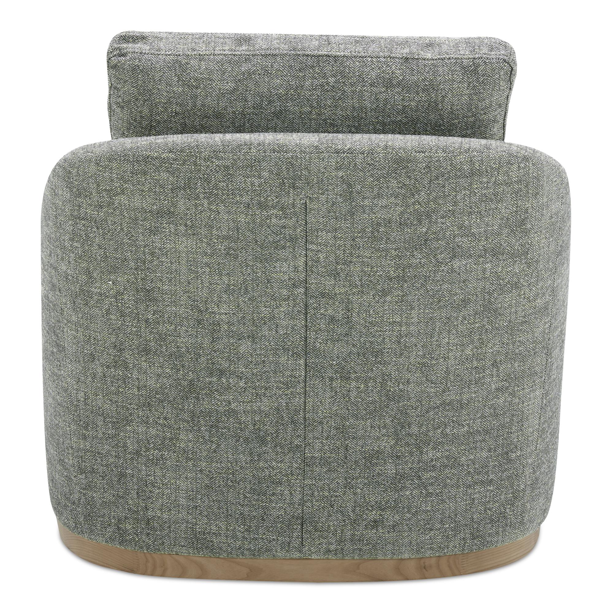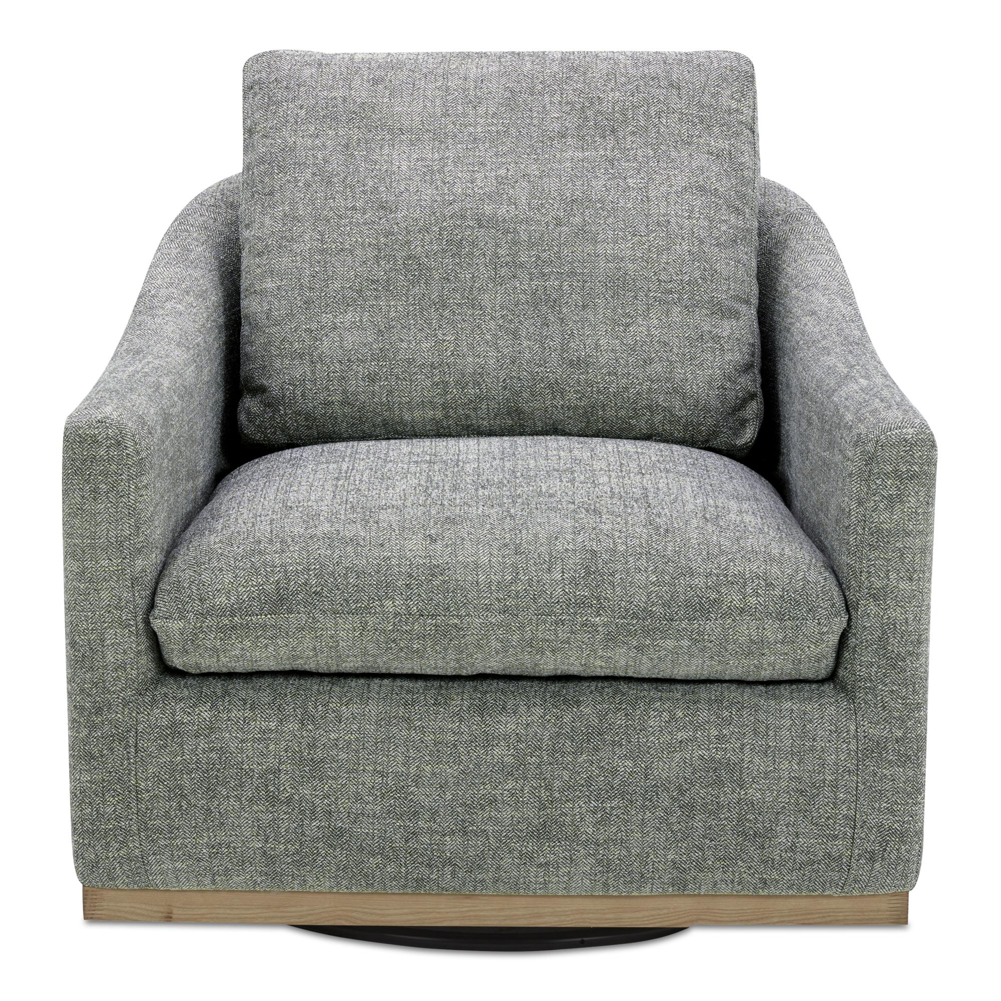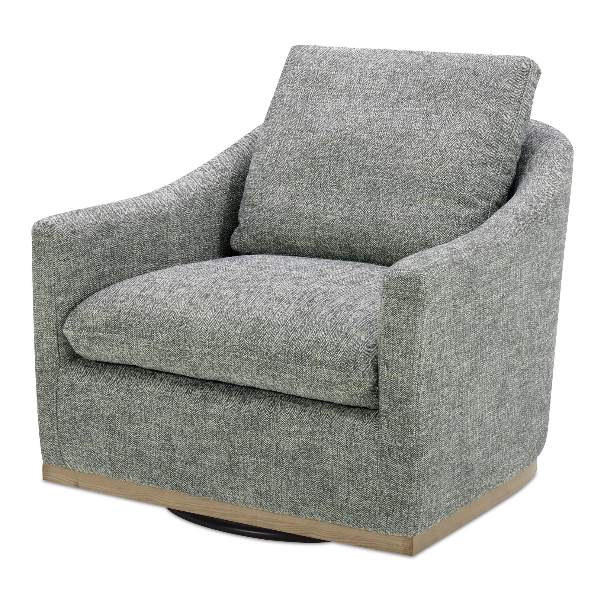 The Linden swivel chair features a curved barrel back paired with a generously sized toss cushion support. A smooth, solid wood base completes the look with a 360° swivel function for an updated, sophisticated feel.