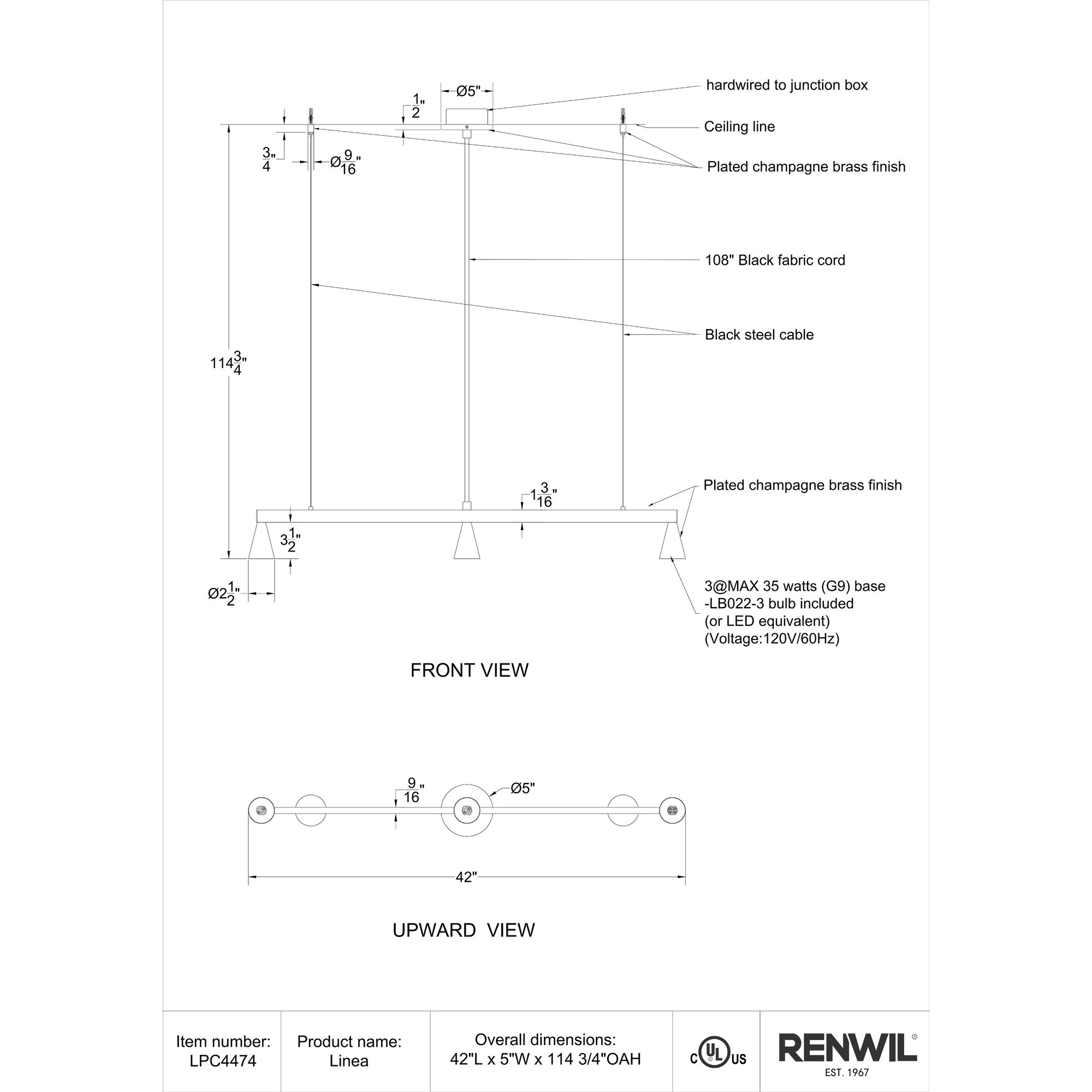 Upgrade your home decor with the stunning Linea 42″ Wide 3-Light Chandelier in Champagne. Featuring a sleek plated finish and high-quality iron construction, this chandelier is built to function while adding a subtle touch of elegance to any room. Its hardwired installation ensures reliable, integrated performance while seamlessly connecting with standard G9 sockets. The champagne-colored finish seamlessly blends with different color schemes, making it an excellent choice for any decor style. With three lights, this chandelier provides ample light and a warm, inviting atmosphere. Perfect for any space, the Linea 42″ Wide 3-Light Chandelier is sure to elevate your home’s aesthetic.