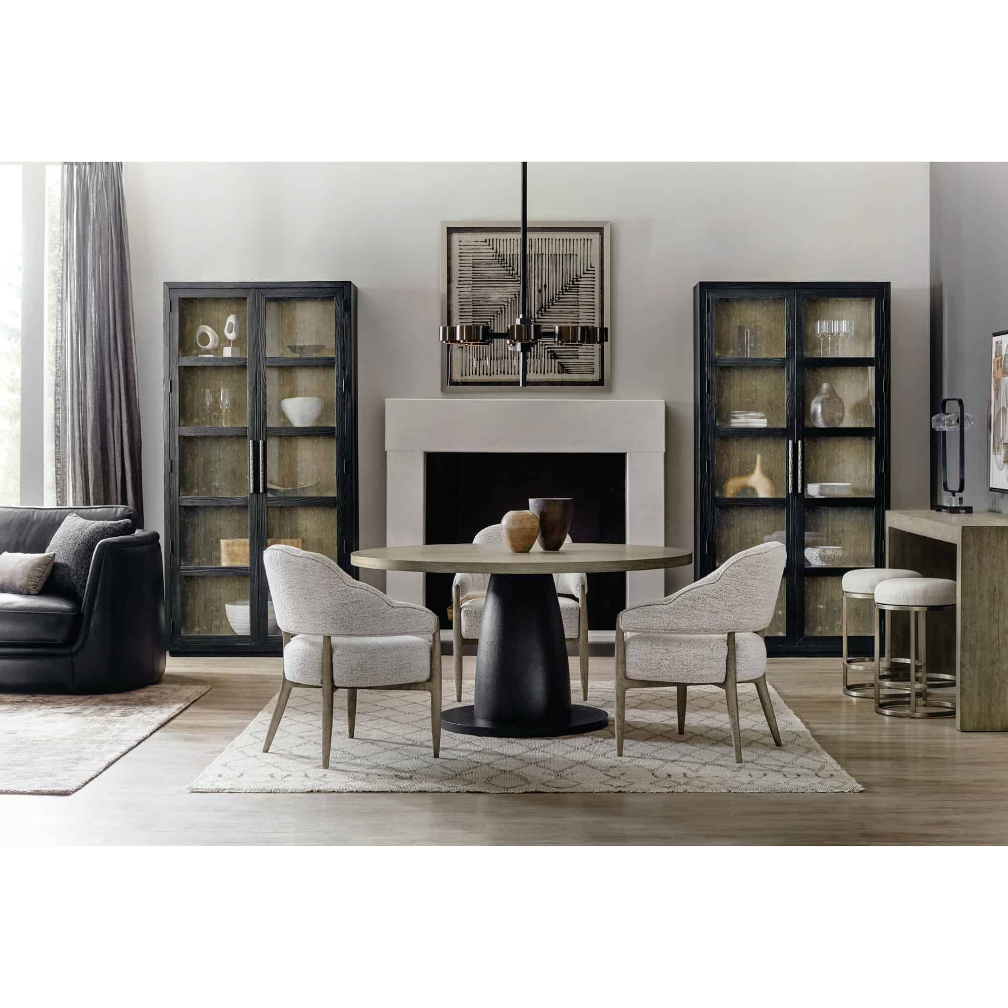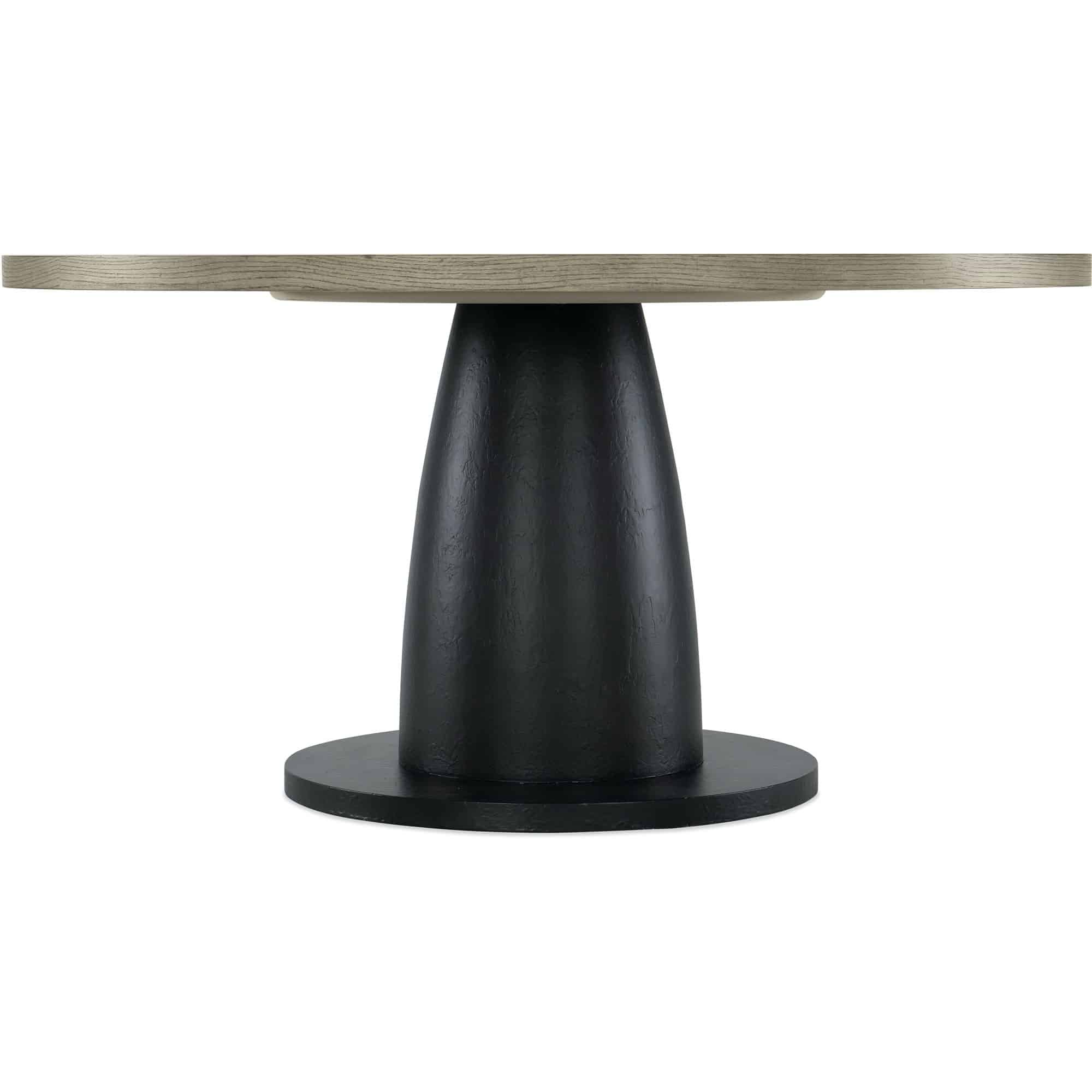 Two-tone table with textured black base and top in the Mink finish