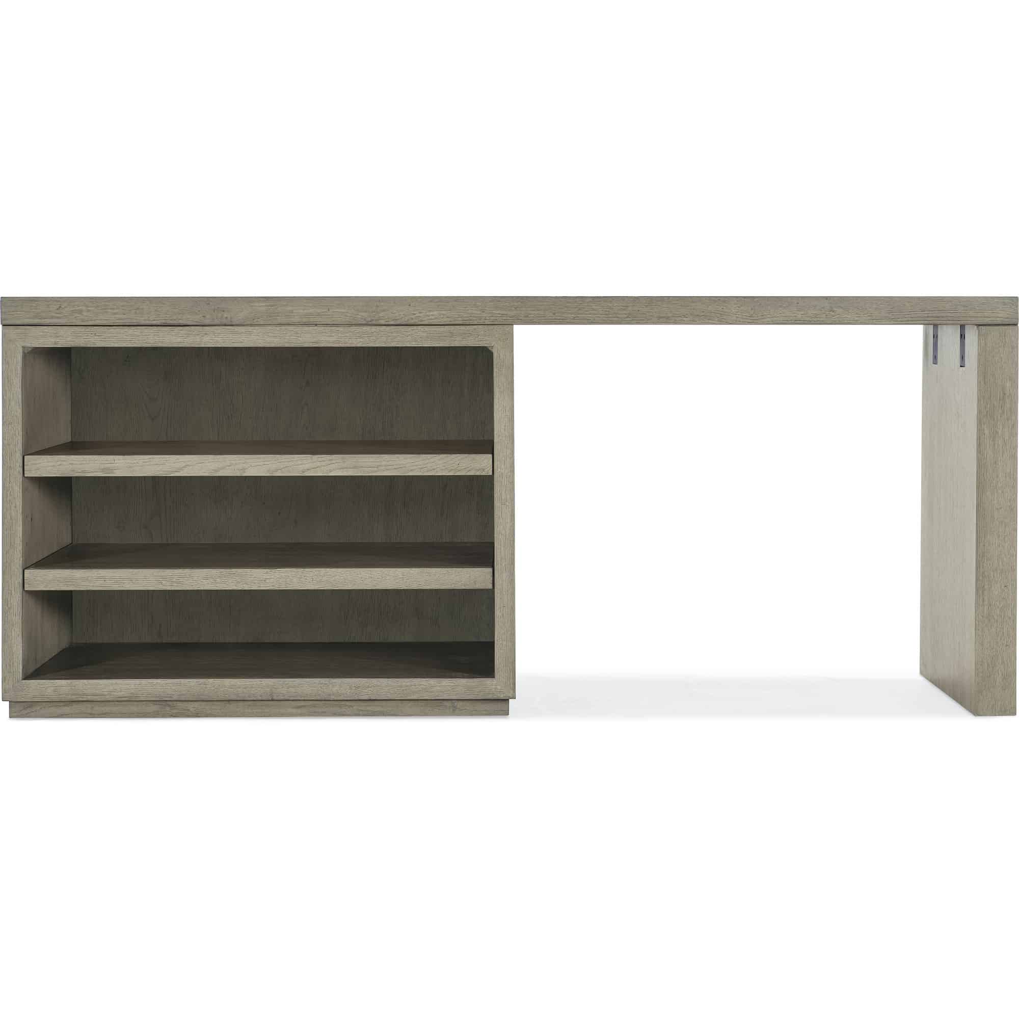 Includes 72-inch top, an open desk cabinet and leg end panel