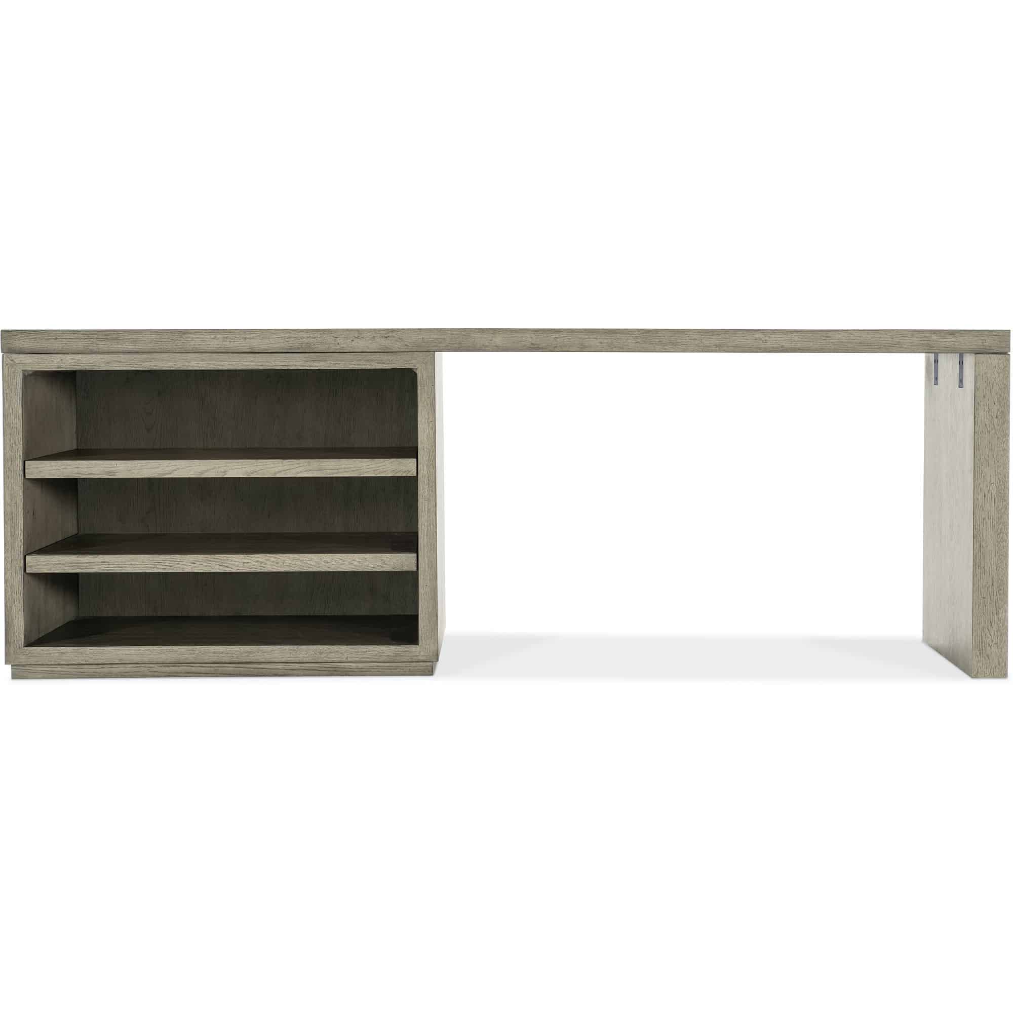 Includes 84-inch top, an open desk cabinet and leg end panel