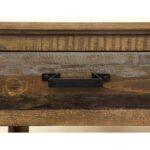 - Multi-step hand-painted water-based acrylic lacquer finish in gray and brown tones for an updated “reclaimed wood” look.