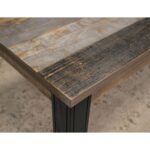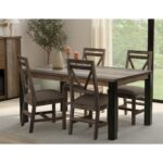- Multi-step hand-painted water-based acrylic lacquer finish in gray and brown tones for an updated “reclaimed wood” look.
