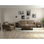 Introducing our captivating Loft Brown Collection, where traditional design seamlessly merges with mid-century modern details in this stunning transitional piece. With its distinctive exposed pine wooden legs and frame, retro-inspired rolled arms, and meticulous craftsmanship, this collection features solid wood and 15mm-thick, 5-layer plywood construction, ensuring both the strength and durability of the frames.