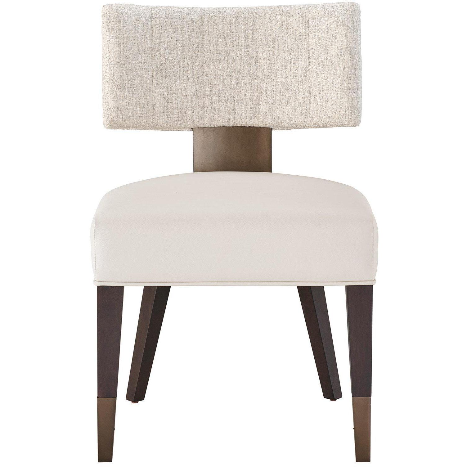 Tapered legs and antique satin brass metal accents add a touch of sophistication to the Klismos inspired back of the Loleta Side Chair.