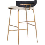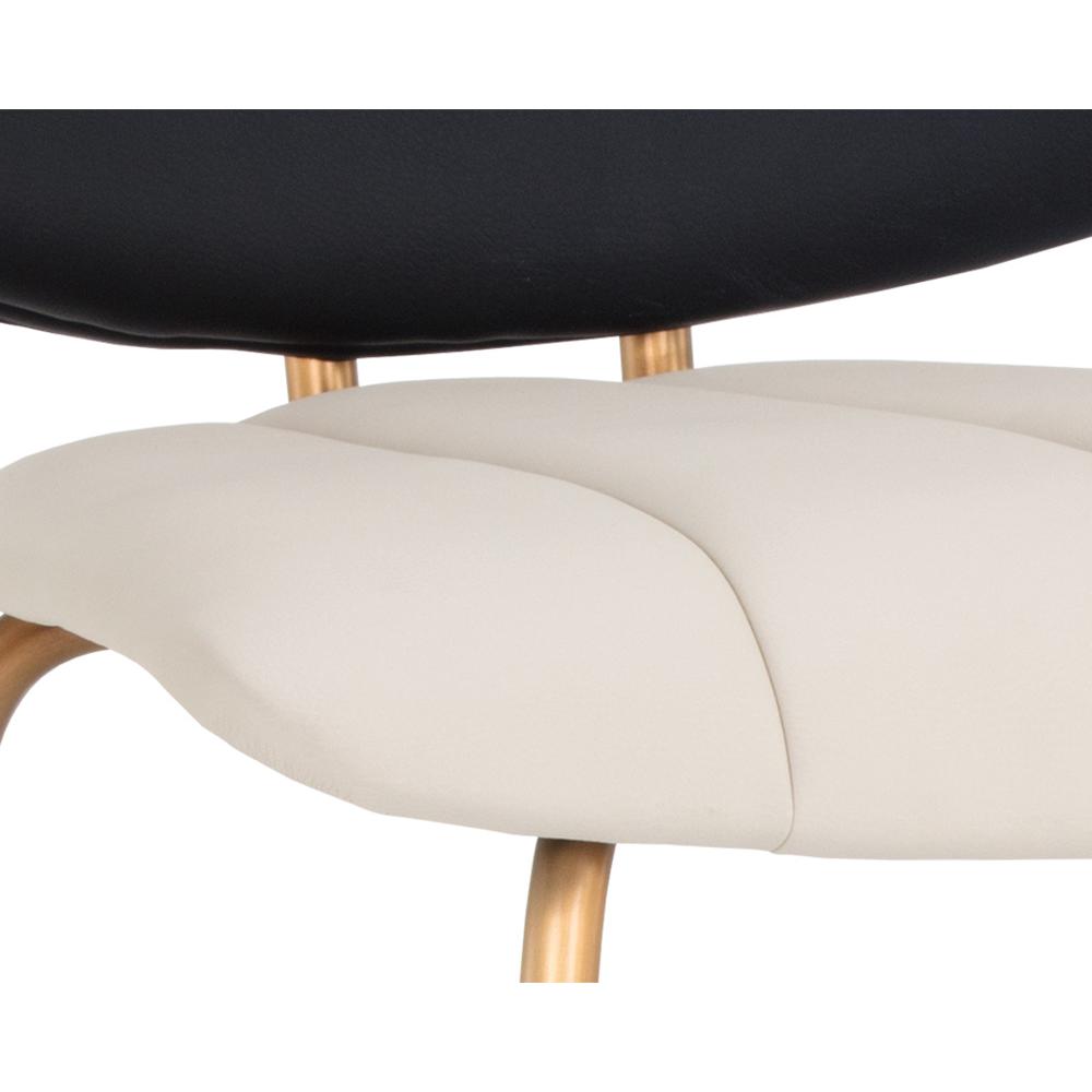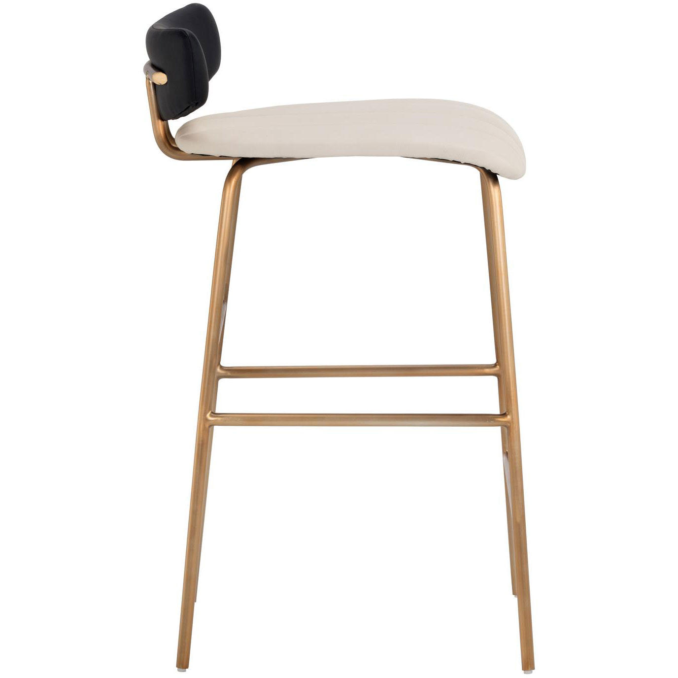 A chic counter stool featuring a channel tufted seat in dillon cream faux leather and a low profile seatback in contrasting dillon black faux leather. A brushed gold stainless steel frame completes this feminine look. Also available with a dillon cream faux leather seat and seatback. Suitable for various dining, kitchen and bar spaces of all sizes. Handle With Care: This design has been crafted with faux leather. Faux leather is manufactured to reflect the natural characteristics of leather; as such, colour variations, markings, wrinkles, grooves, and light scratches are appreciated characteristics. No two pieces will be alike.