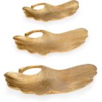 A symbol of peace and tranquility, our Lotus Leaf Trays are a stunning decorative addition to any decor. The set of three trays in various sizes are made of a cast composite with an antique gold finish. Display your trays on tables or shelves around your home to add cohesion to your design style. Designed by Elizabeth Wicker. (SM: 12″W x 8.5″D x 2.”H, MD: 16″W x 10″D x 2″H, LG: 20″W x 14″D x 2.75″H)