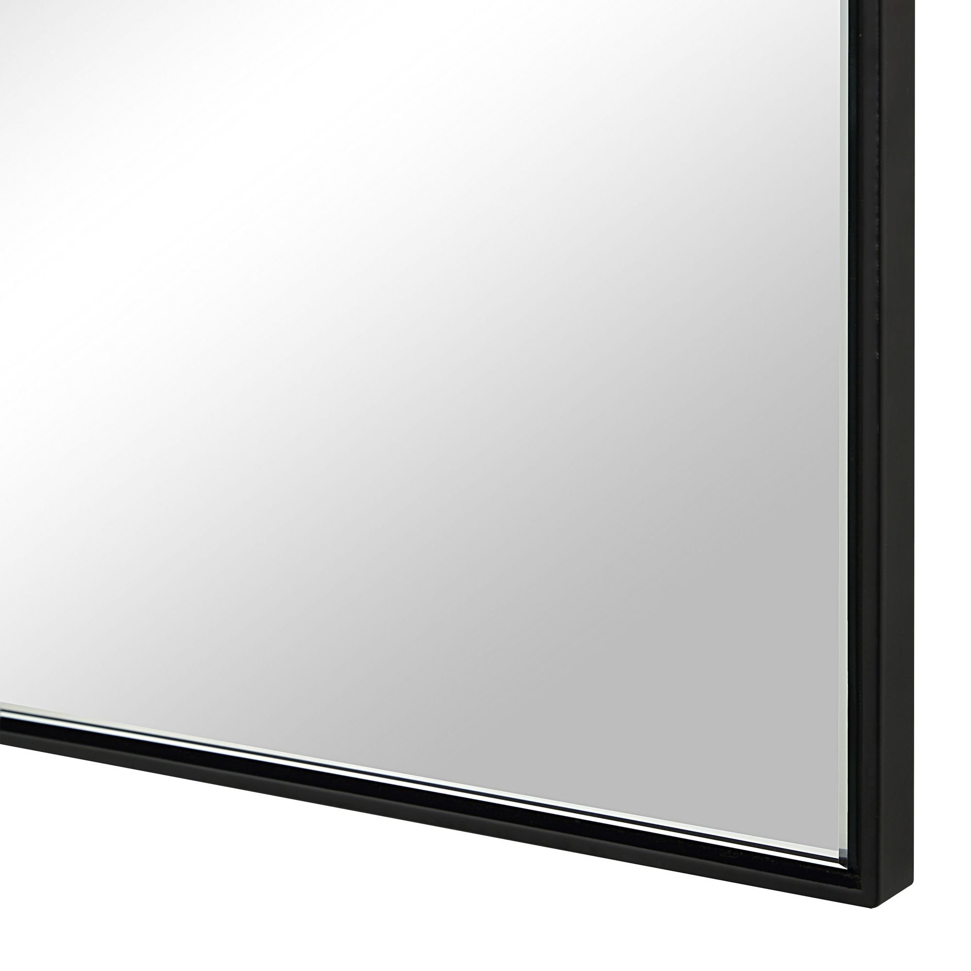 Make a statement with this clean lined, simply styled modern wall art mirror. Its slim, matte black frame makes it perfectly suited for hanging in contemporary spaces while its high-quality craftsmanship ensures a distortion-free reflection from every angle.