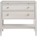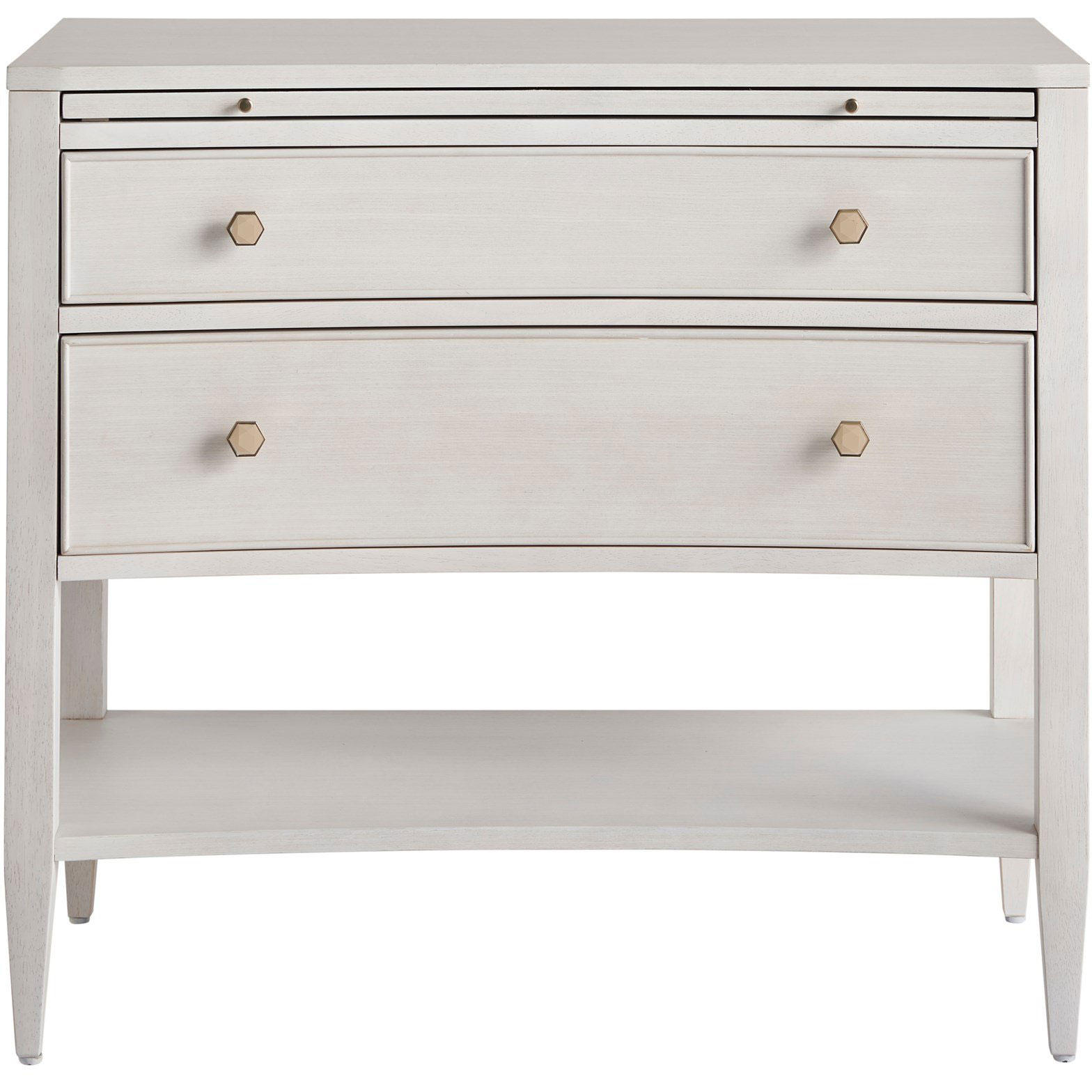 Wonderfully chic and sophisticated, the Chelsea Nightstand is encased in an Alabaster finish and designed with two drawers, and a laminated pull-out shelf. It is accented with soft gold, hexagonal hardware for a simple, streamlined look.