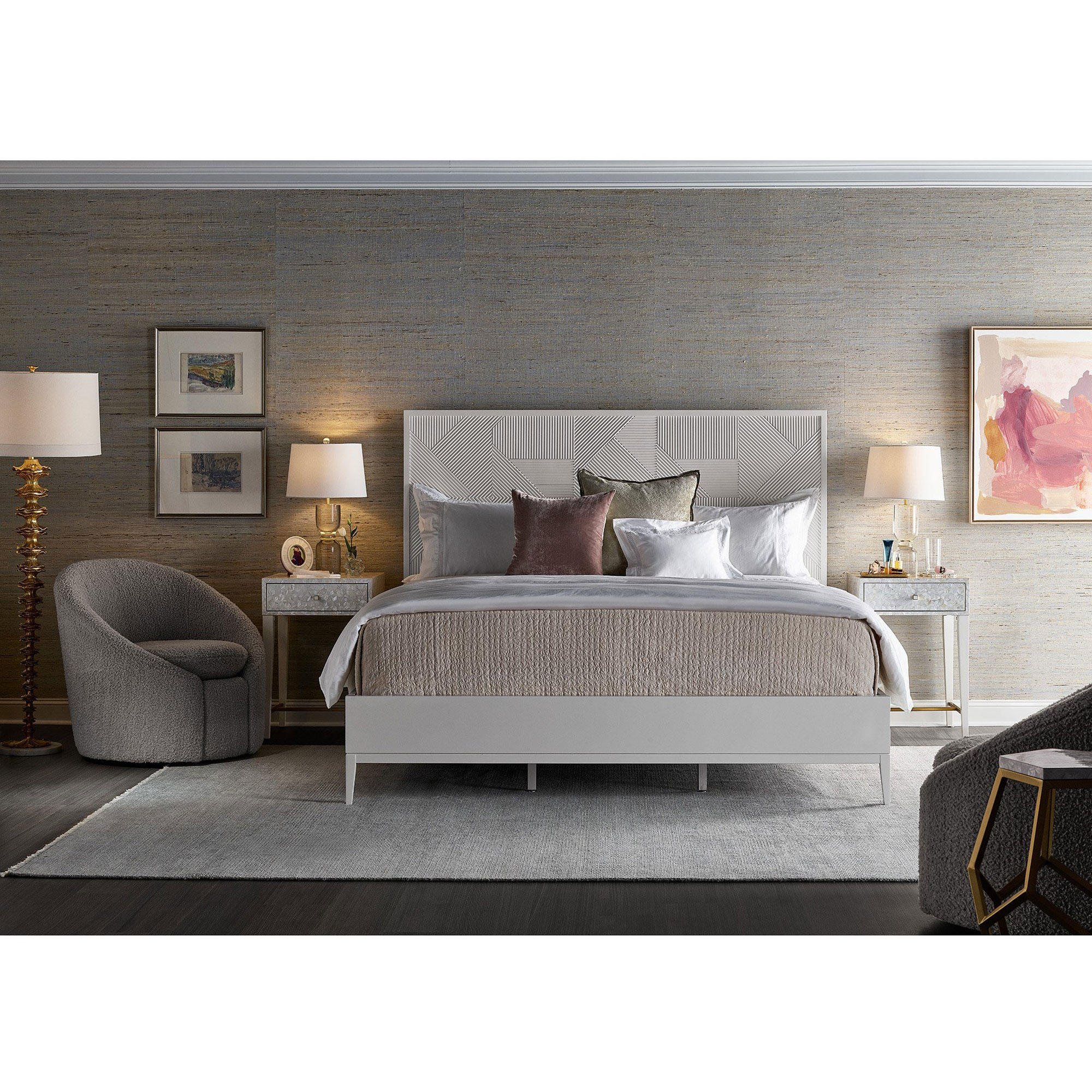 Delightfully intricate, the Malibu Bed adds a calm and soothing composure to bedroom areas, capturing a breezy essence within a sophisticated, white lacquer silhouette.