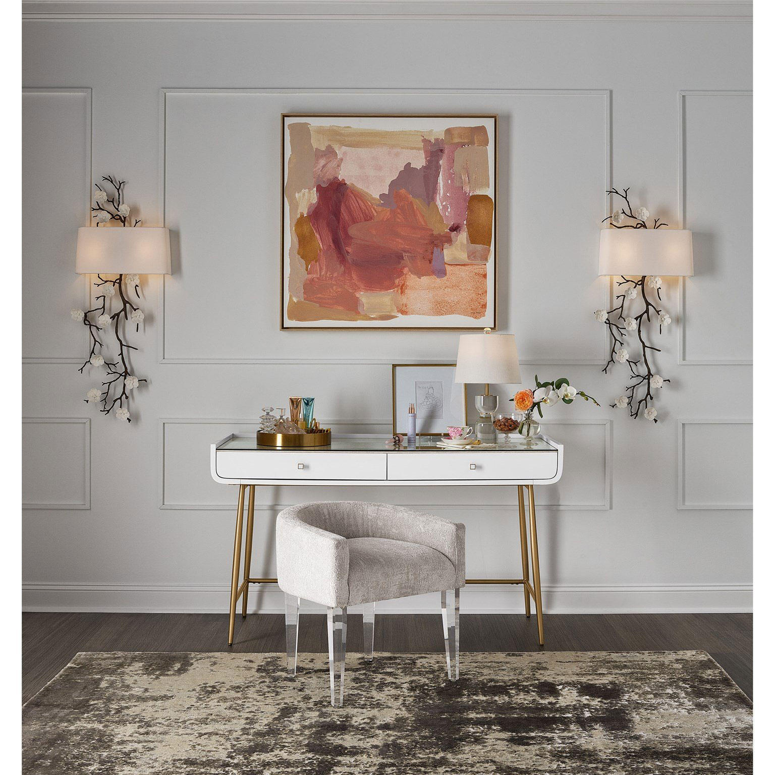 Introduce a soft authenticity with the Love Joy Bliss Vanity Chair, a sophisticated piece upholstered in a Bubbly Champagne fabric and accented with trendy acrylic legs.