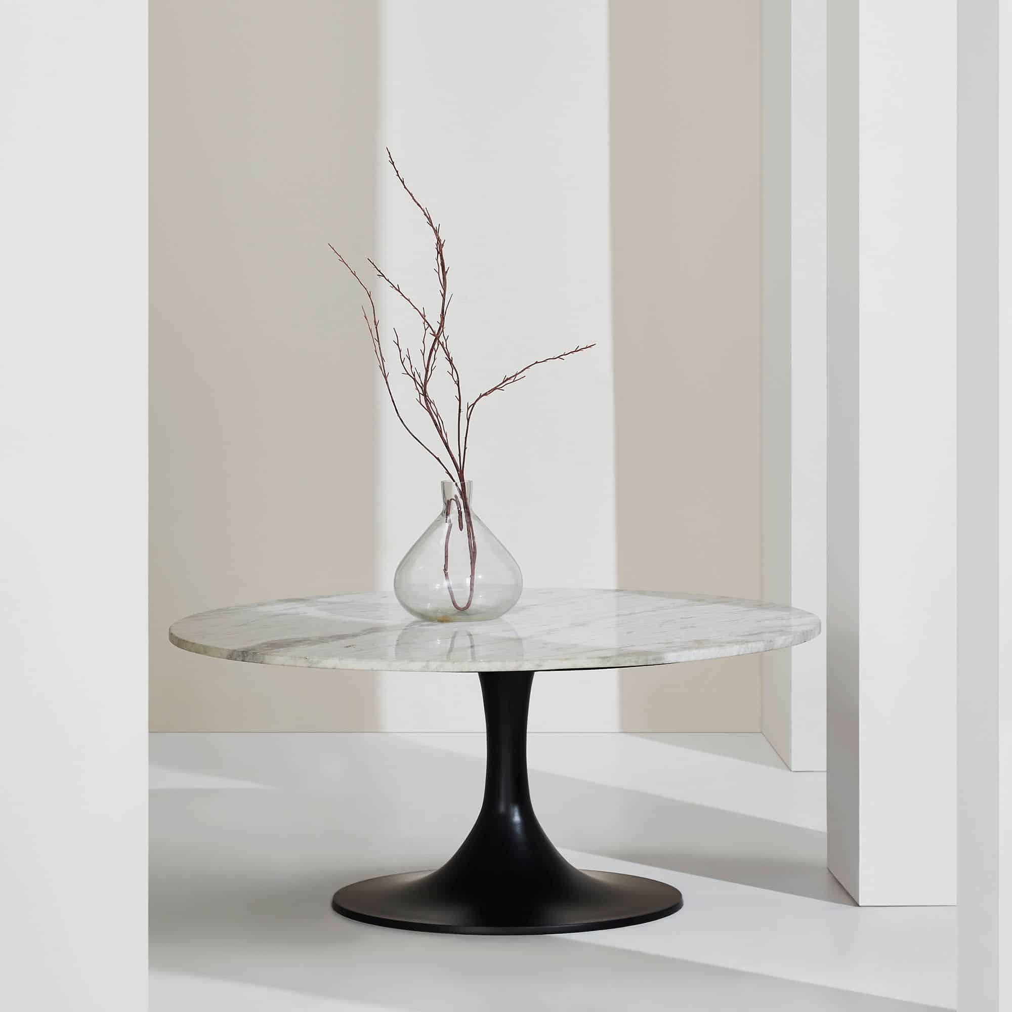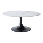 While often reserved for utility, this coffee table acts as a designer-quality focal point in the contemporary home. With an effortlessly chic marble and aluminum construction, this table can serve as a decorative element in the living room or as a resting place for trays and coffee table books. When this table is styled with other neutral hues, the interior overall takes on a classy and cool impression.