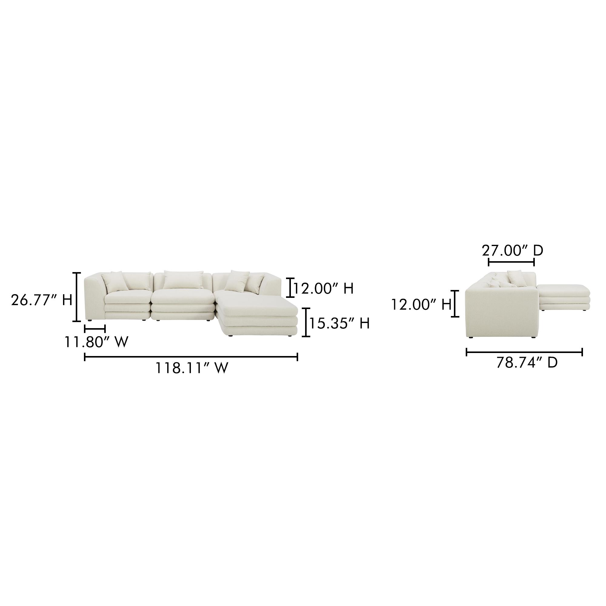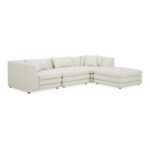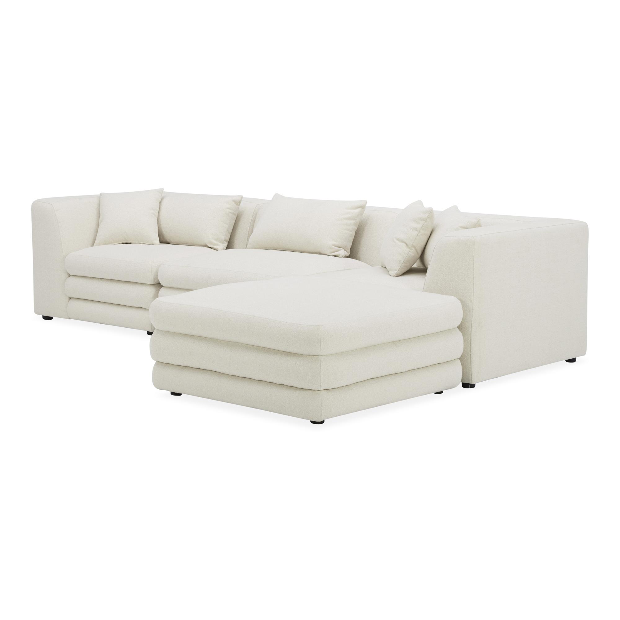 Influenced by the playful forms of the 1970s, the Lowtide lounge modular sectional configuration showcases a layered appearance that promotes comfort. Textured fabric enhances its vintage influence and understated elegance, as this modular sectional adds visual interest while allowing for creative arrangement possibilities.