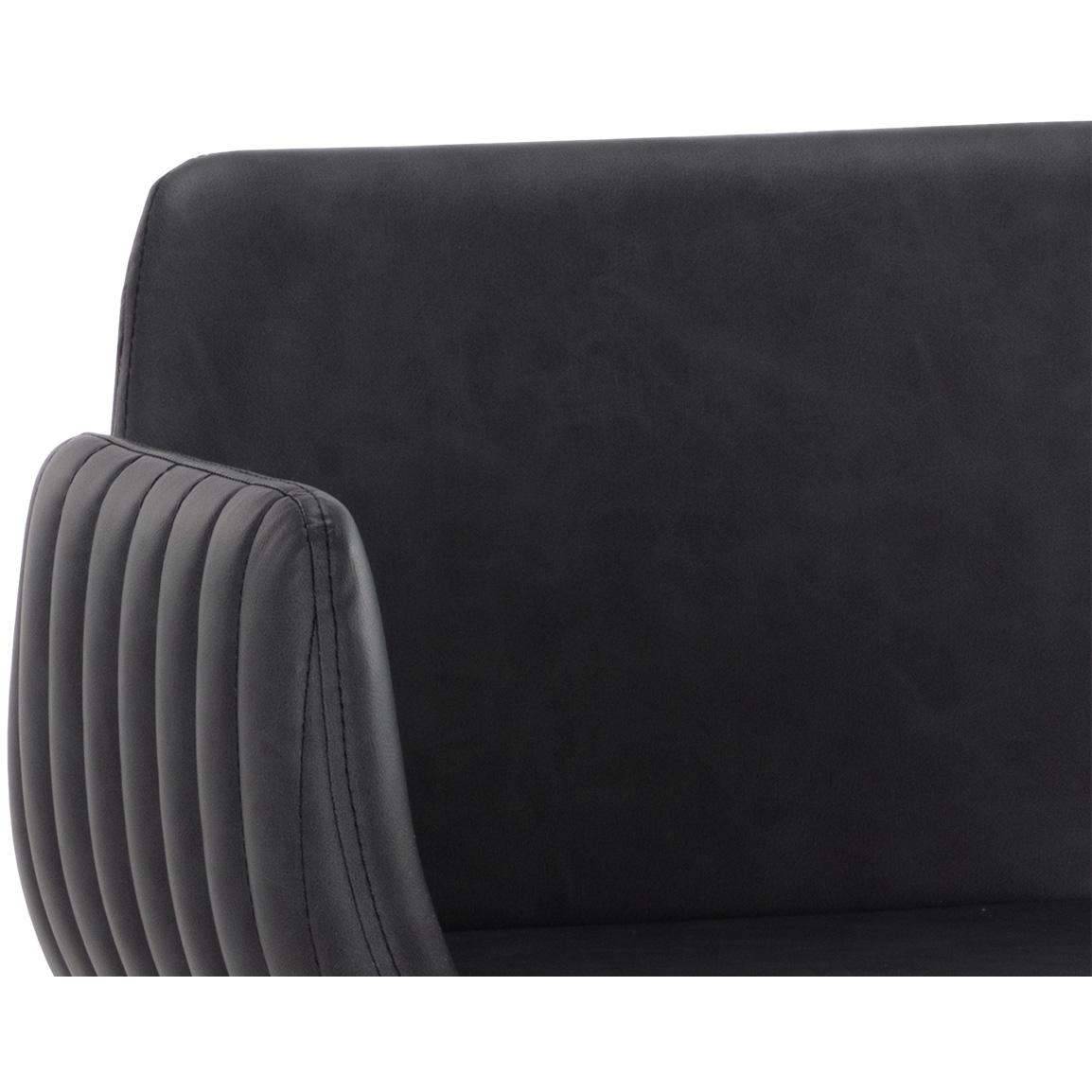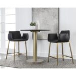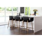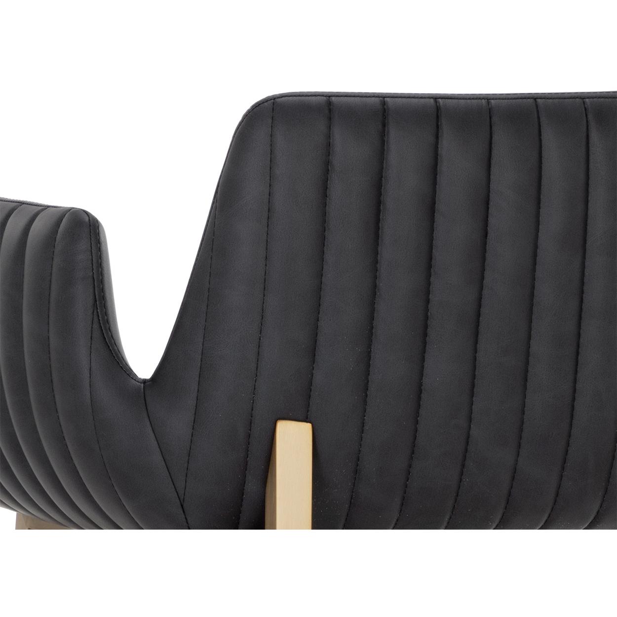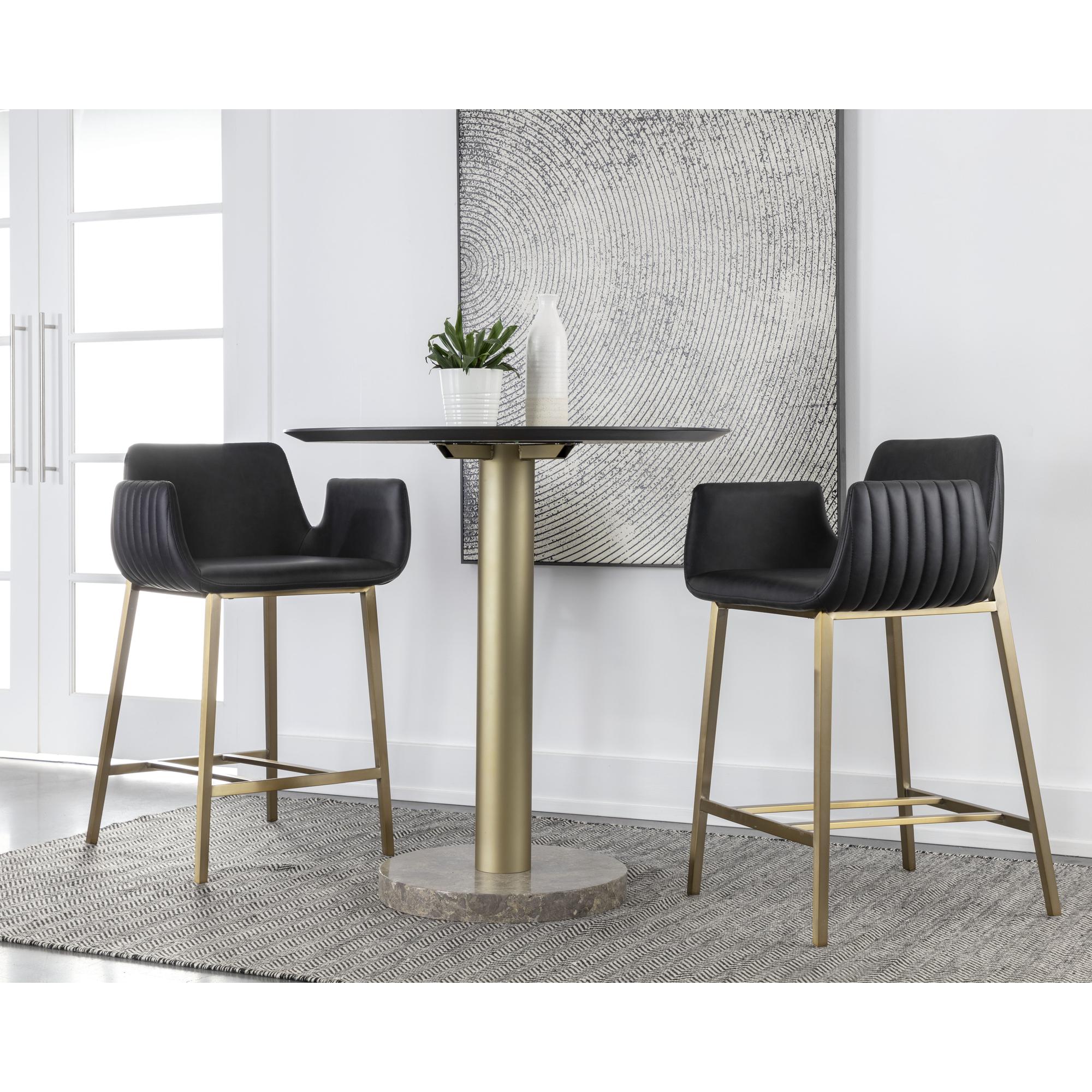 With its stunning scooped design, the Lucano Counter Stool is an impressive addition to any dining space. Features vertical channel tufting on exterior seat. Stocked in smooth bravo black faux leather and completed with gold stainless steel legs.