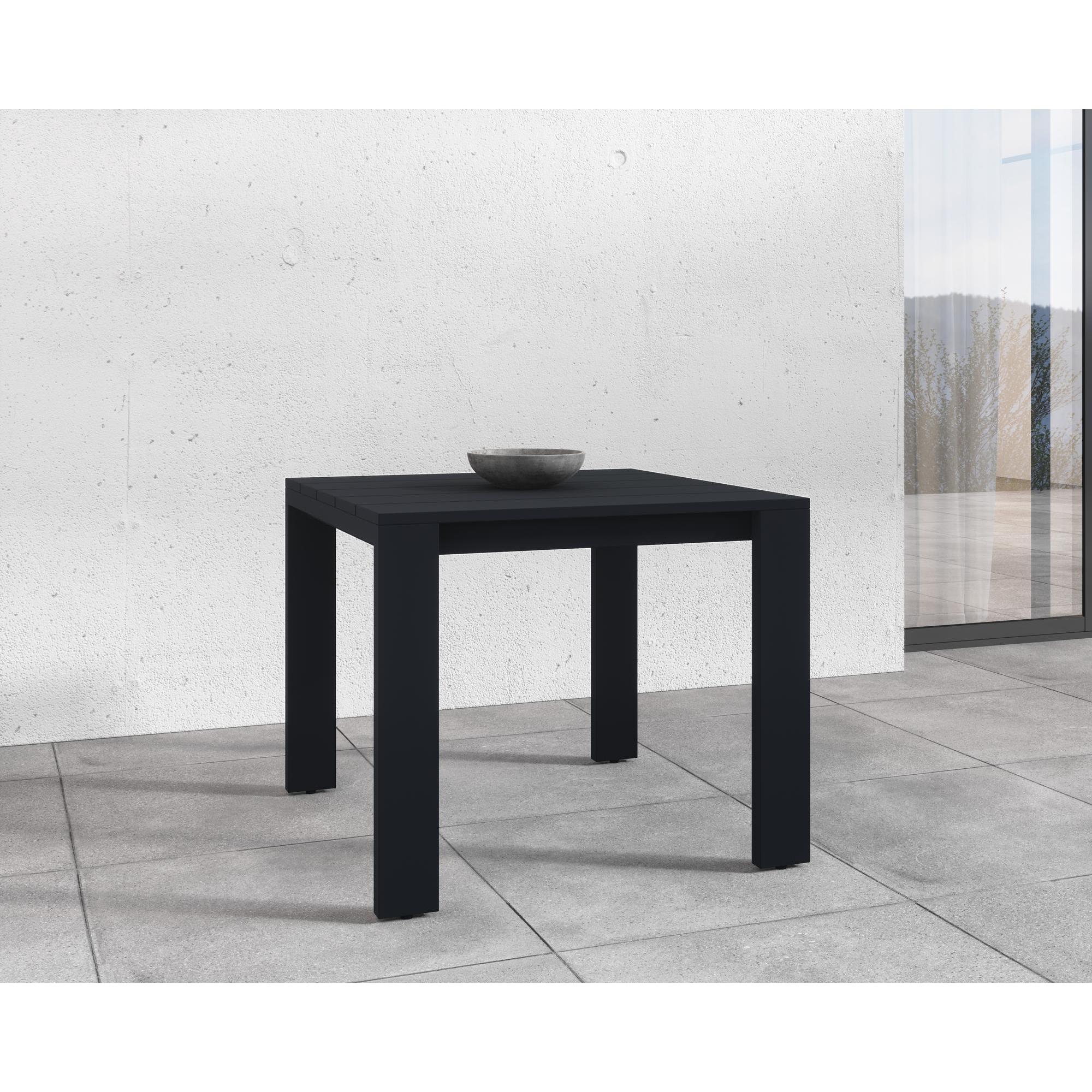 Dine in style outdoors with this modern square dining table from our Outdoor by SUNPAN collection. The Parsons style design features sterling black aluminum frame.