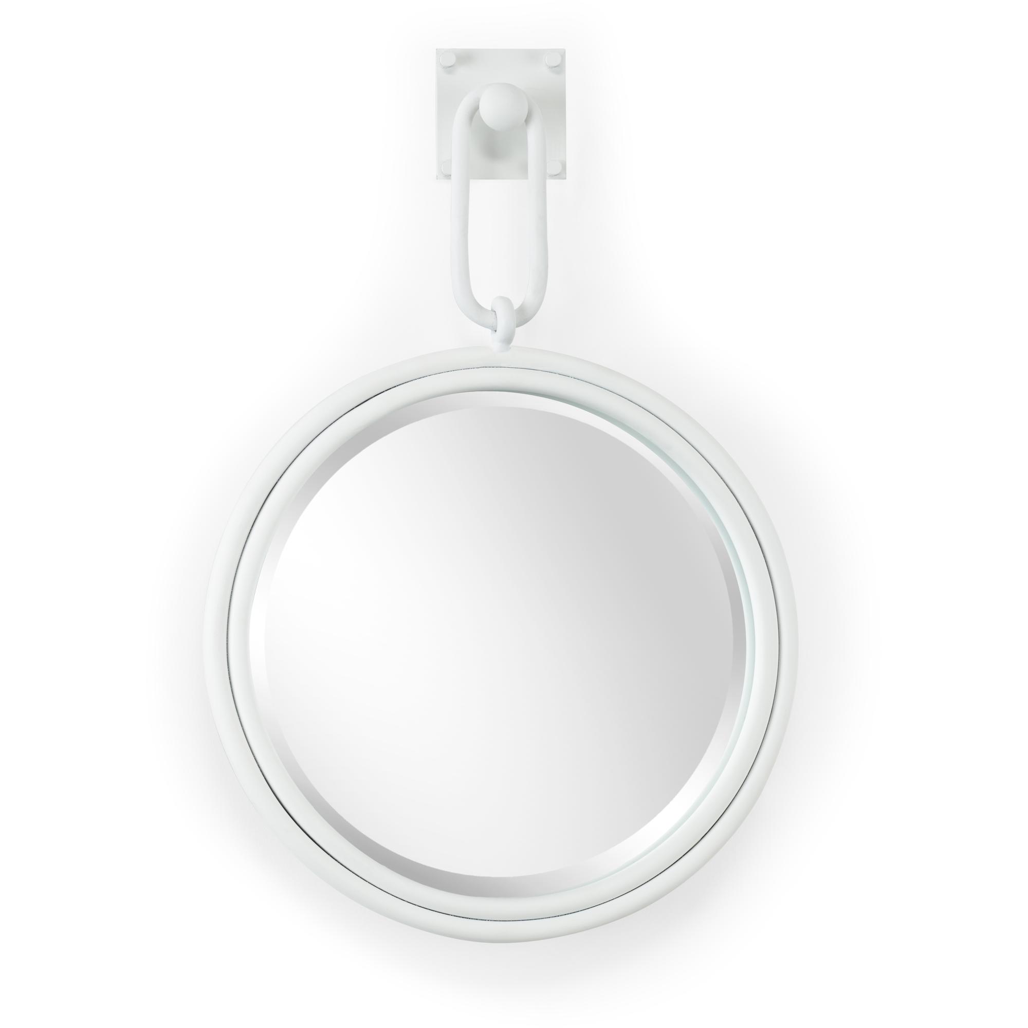 Open up your space while adding style with Lucia mirror. This versatile accent mirror features a simple white finish on a classic circular shaped iron frame. This modern design is suspended from a square wall hook for added dimension. Hang this beveled mirror over a cabinet in your entryway or add to a gallery wall to reflect your design aesthetic. (Available in other sizes and finishes)