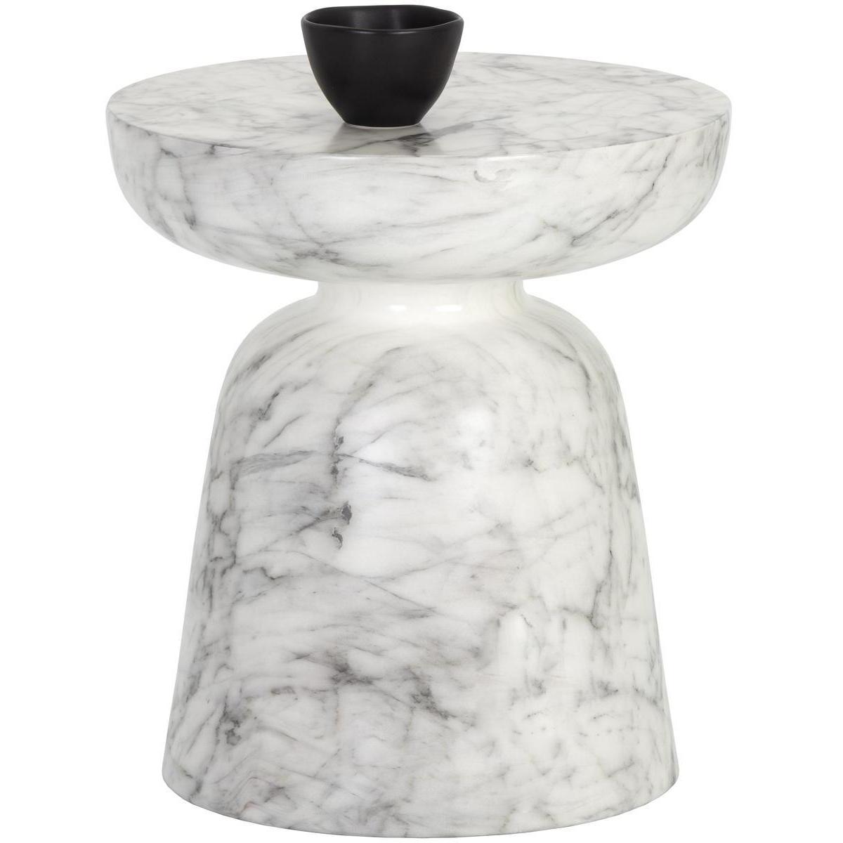 This alluring concrete end table will add depth and excitement to any space. The painted white marble-look finish makes it ideal for contemporary indoor and outdoor placements. Suitable for indoor and covered outdoor spaces.