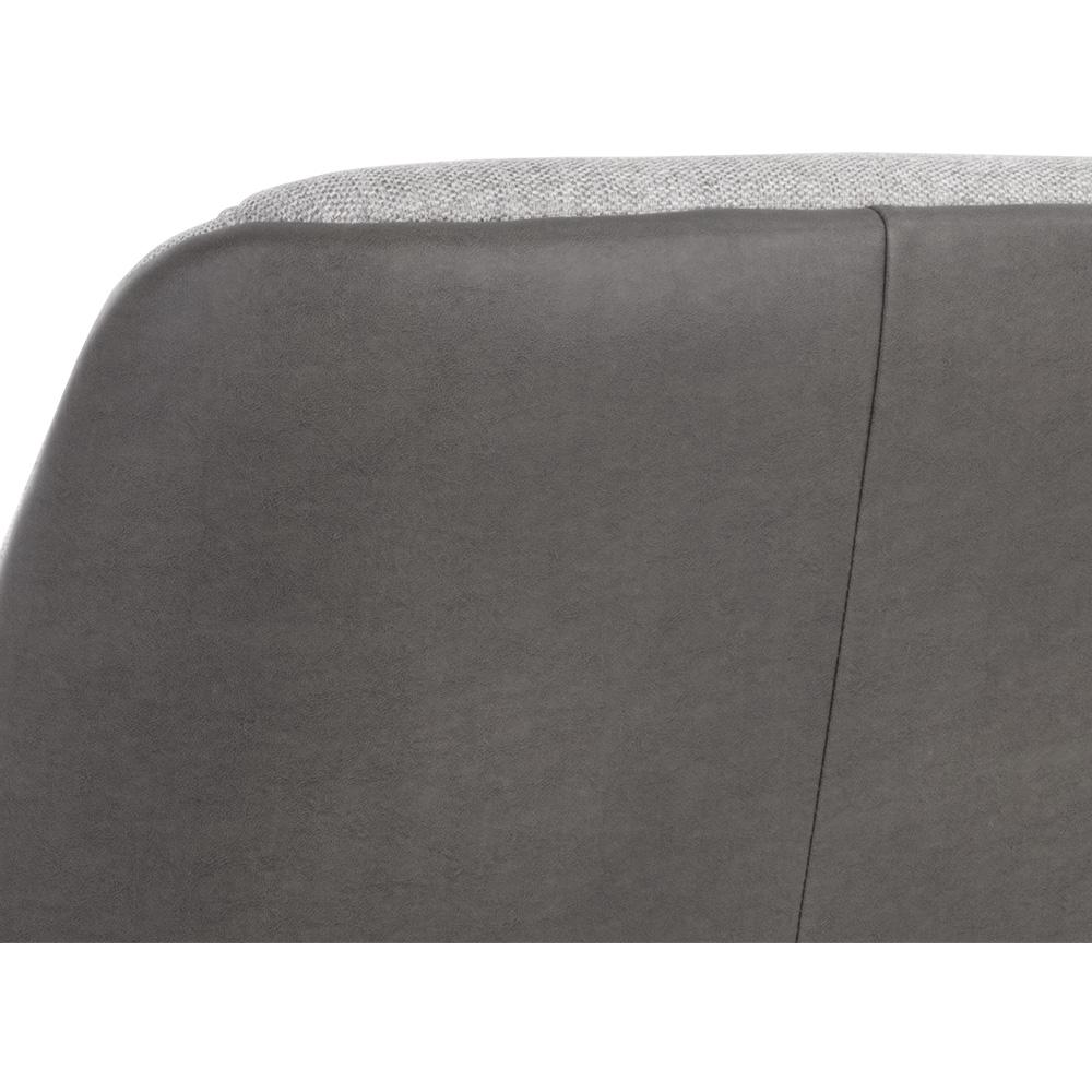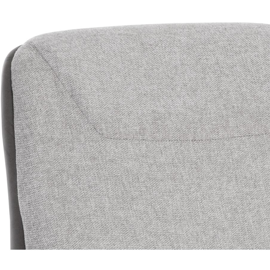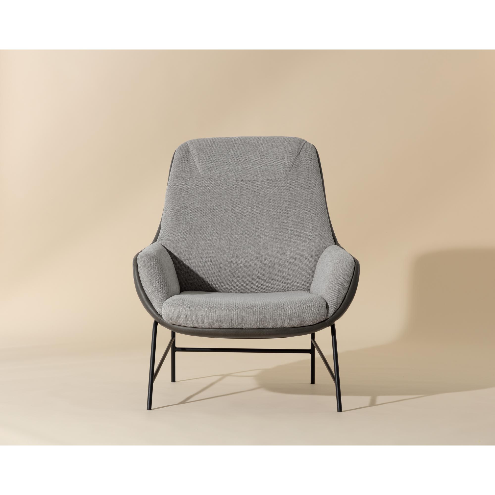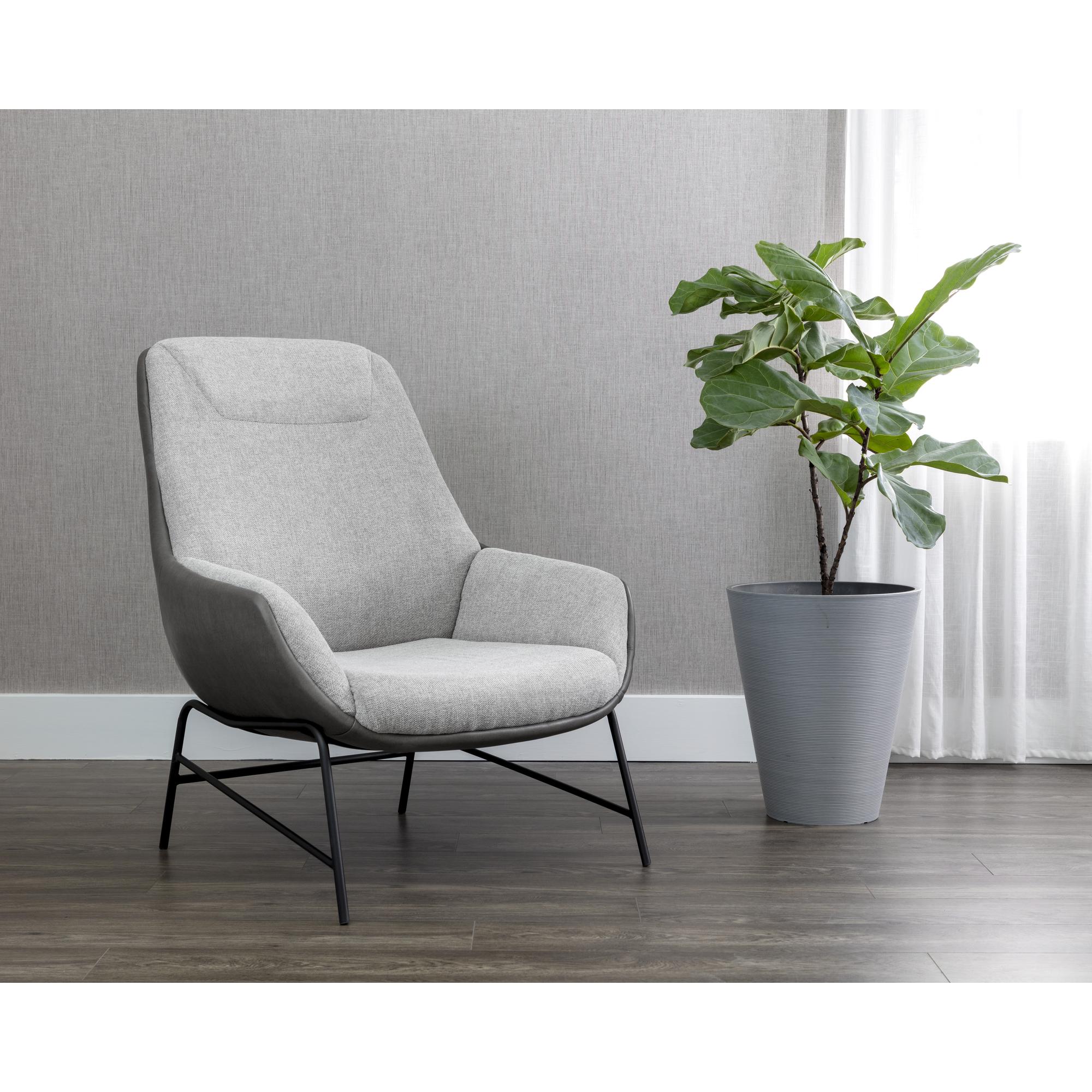 This handsome lounge chair is defined by modern design elements. Features a comfortable seat in belfast heather grey fabric with a bravo ash faux leather exterior. Black powder coated metal legs complete the look. Also available in belfast oatmeal fabric with bravo cognac faux leather. Handle With Care: This design has been crafted with faux leather. Faux leather is manufactured to reflect the natural characteristics of leather; as such, colour variations, markings wrinkles, grooves, and light scratches are appreciated characteristics. No two pieces will be alike. Visit our Product Care page for more information on how to ensure the lasting beauty of this piece.