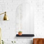 Organic influence takes centre stage in this mirror design. Set in the minimalist entryway, it provides light and utility to the daily routine. The serene quality of the arching structure is elevated, while the shelf adds functional luxury.