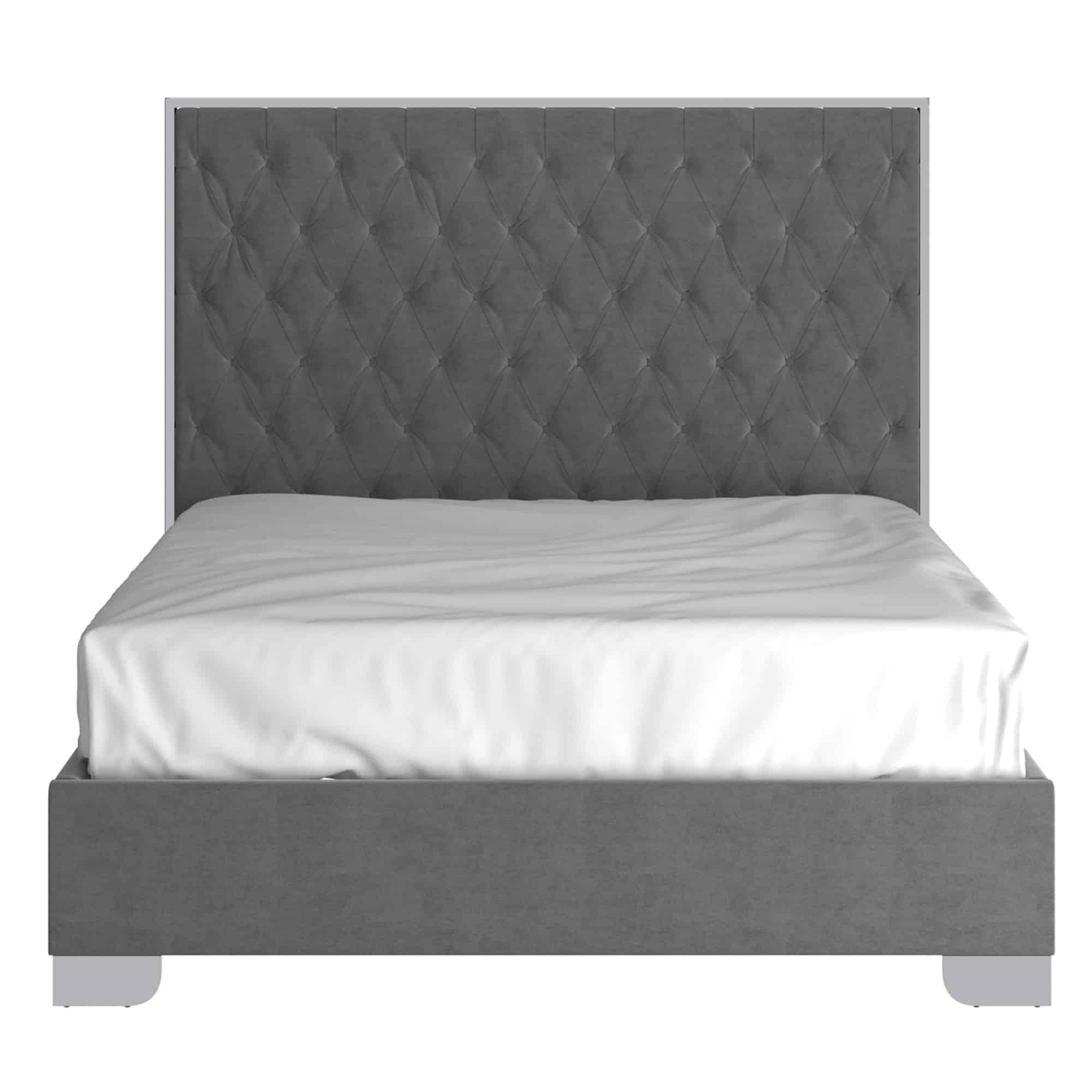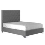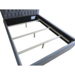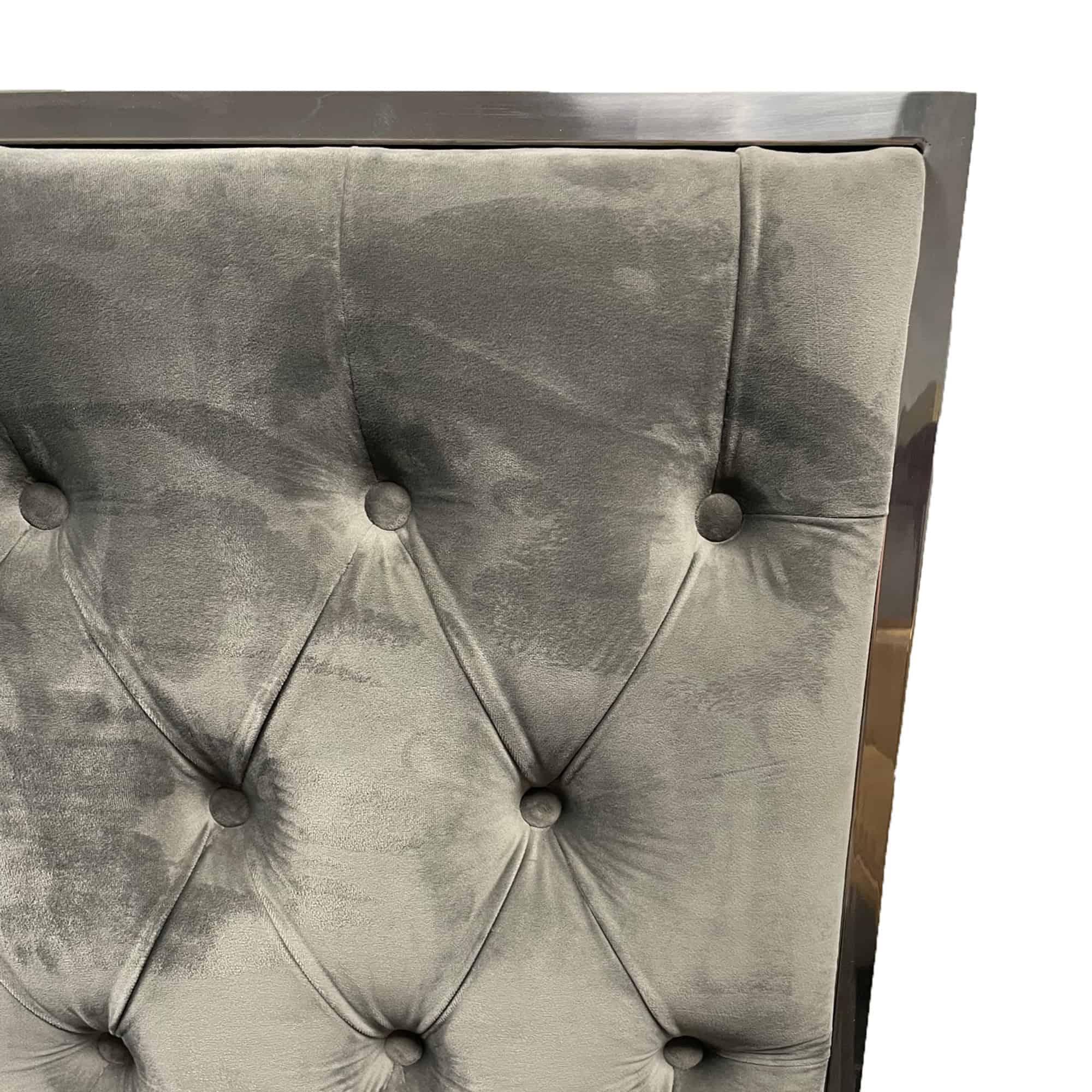 - Diamond patterned button tufting on headboard with polished stainless steel frame