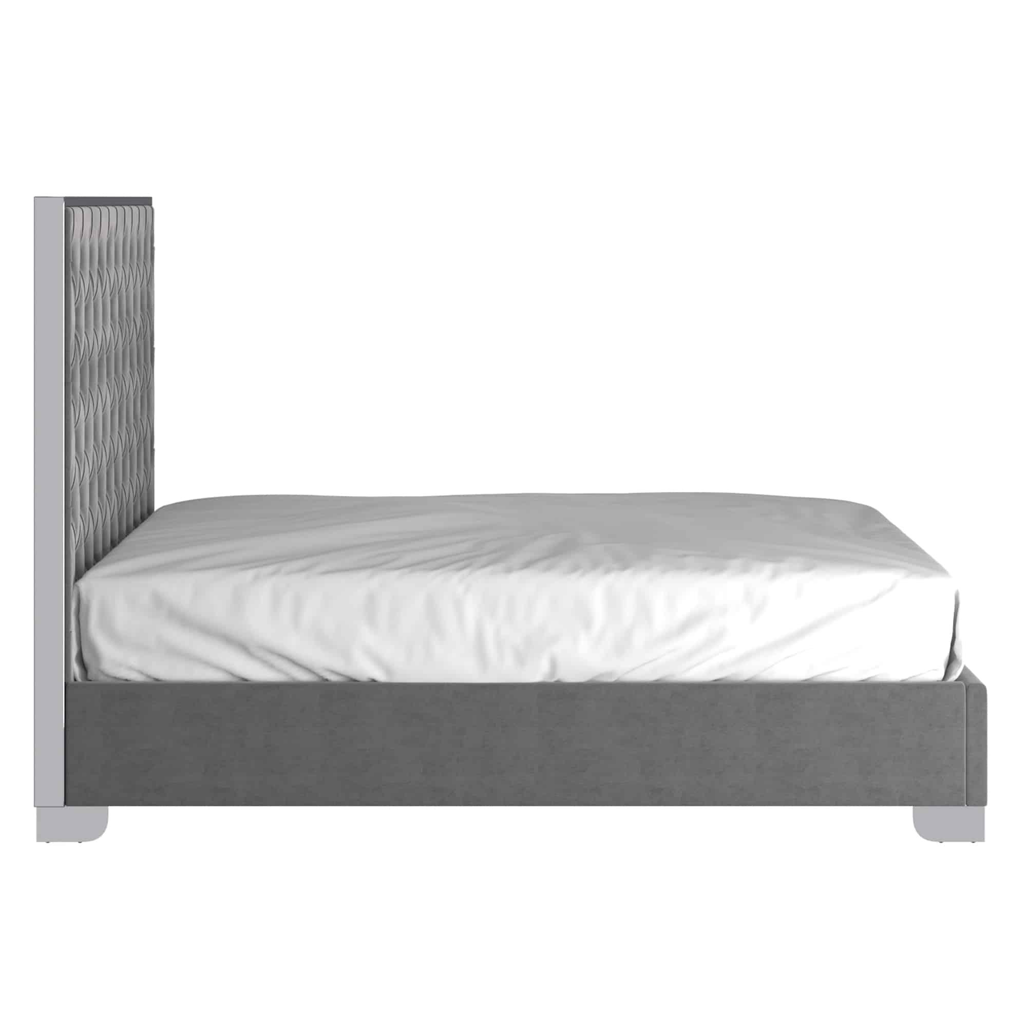 Bring a high-end look to your bedroom with this velvet and stainless steel upholstered bed. Everything from the button tufting on the plush upholstery to the polished metal legs screams style! Perfect for a master bedroom or to up the ante in the guest room.
