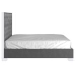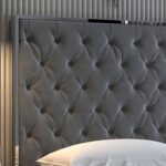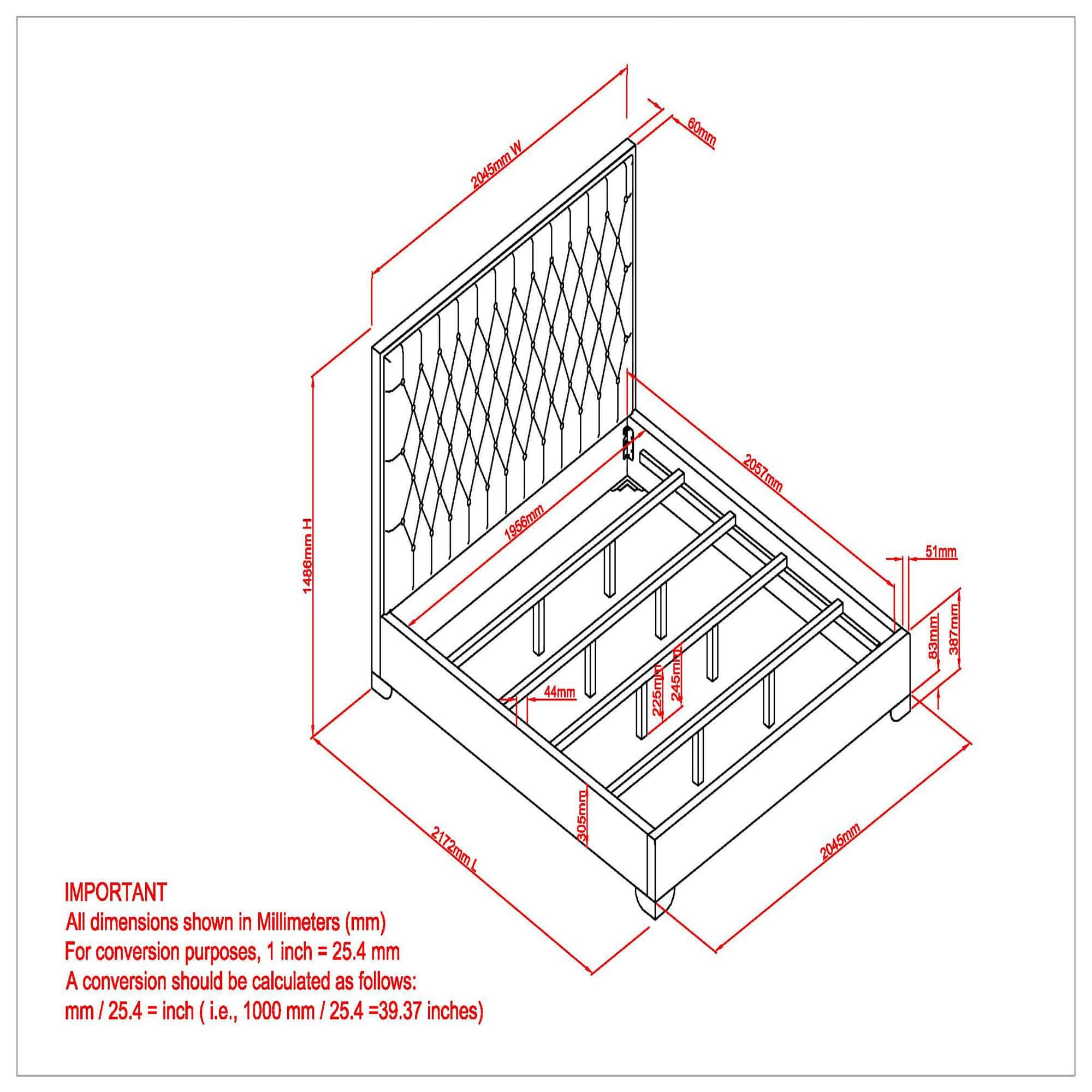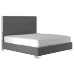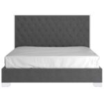 - Diamond patterned button tufting on headboard with polished stainless steel frame