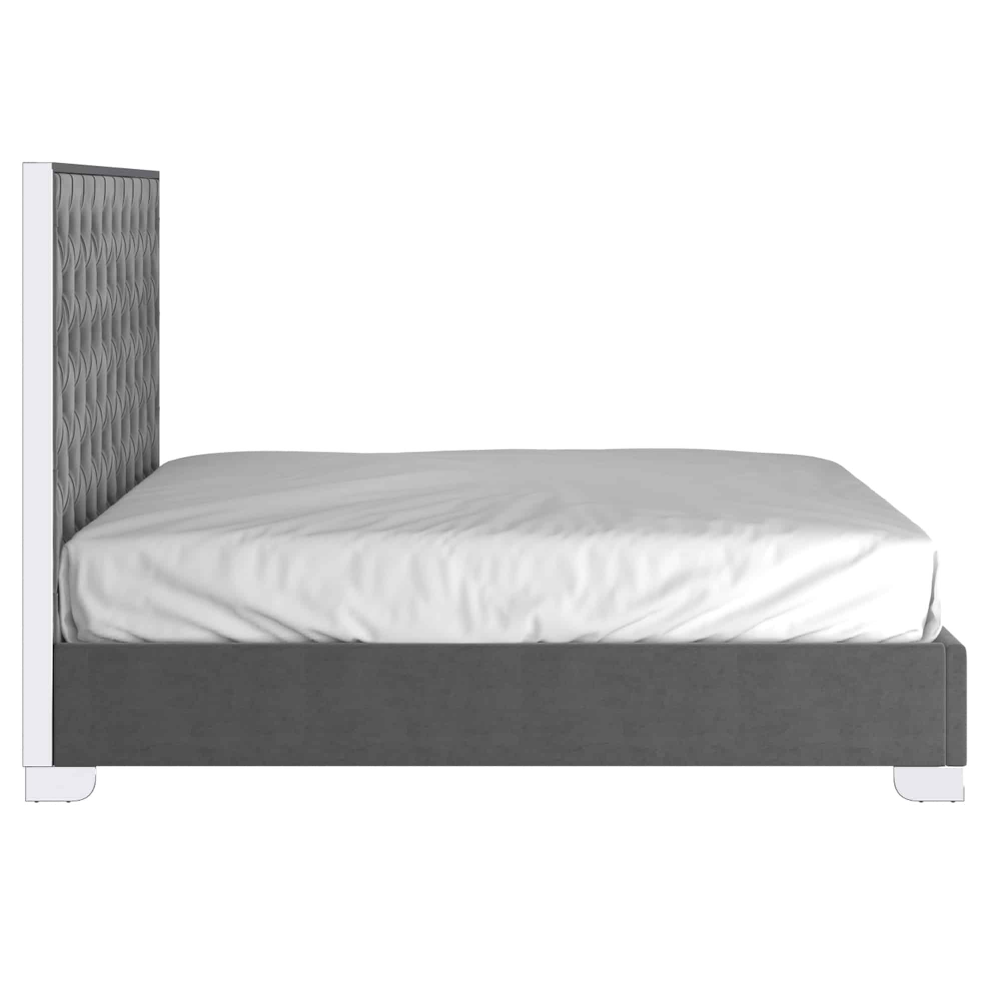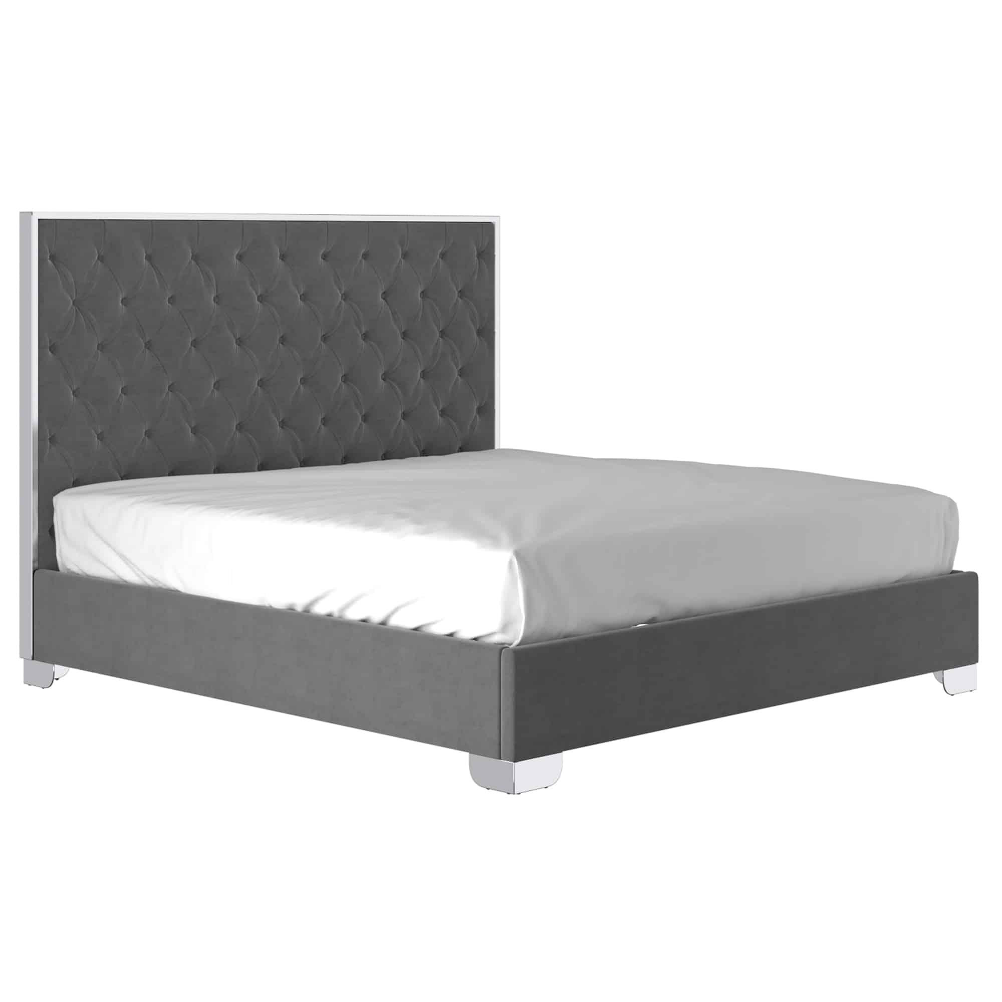 Bring a high-end look to your bedroom with this velvet and stainless steel upholstered bed. Everything from the button tufting on the plush upholstery to the polished metal legs screams style! Perfect for a master bedroom that you will fall in love with.
