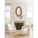 Enhance your home by adding depth, style and function with our exquisite Lucius Mirror. Crafted of composite with an antique gold leaf finish, this 46″ oval wall mirror will make a statement in an entryway or great room. (Available in other finishes: search Lucius)