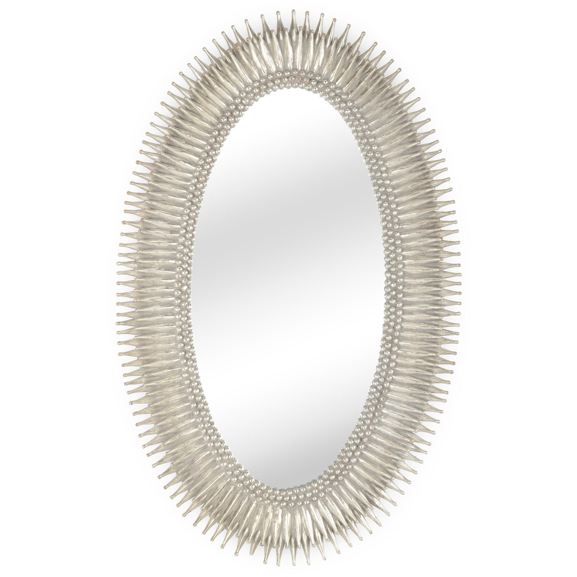 Enhance your home by adding depth, style and function with our exquisite Lucius Mirror. Crafted of composite with an antique silver leaf finish, this 46″ oval wall mirror will make a statement in an entryway or great room. (Available in other finishes: search Lucius)