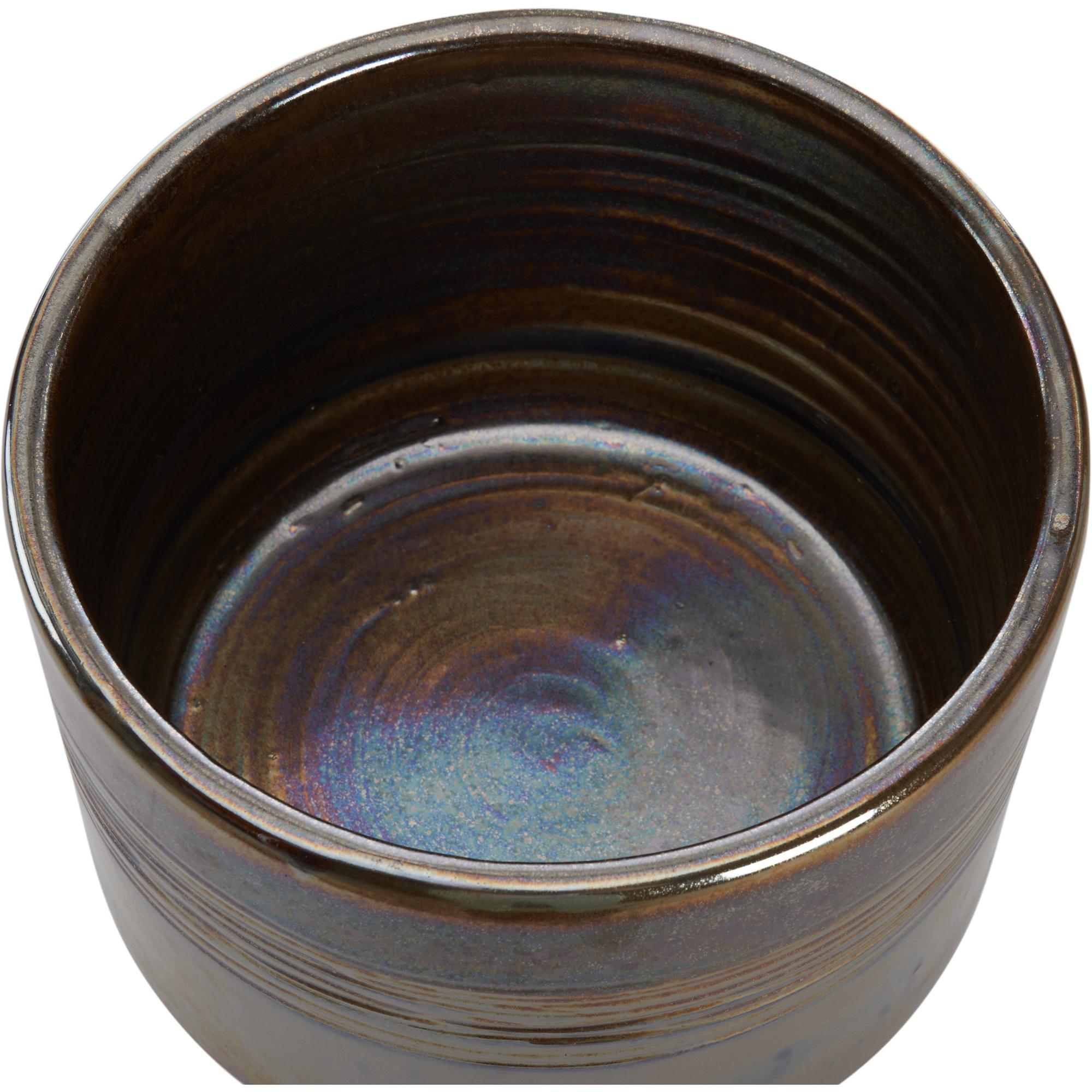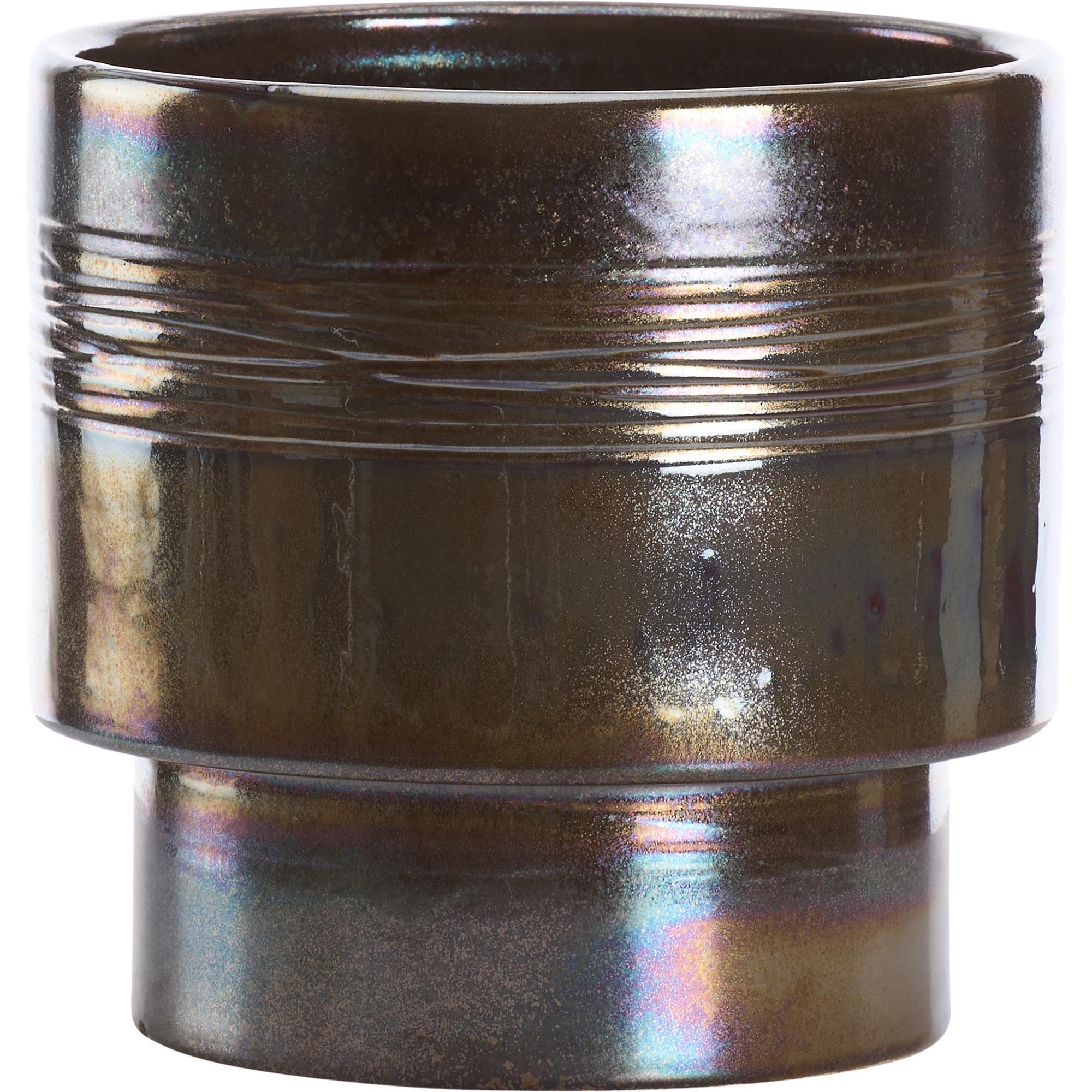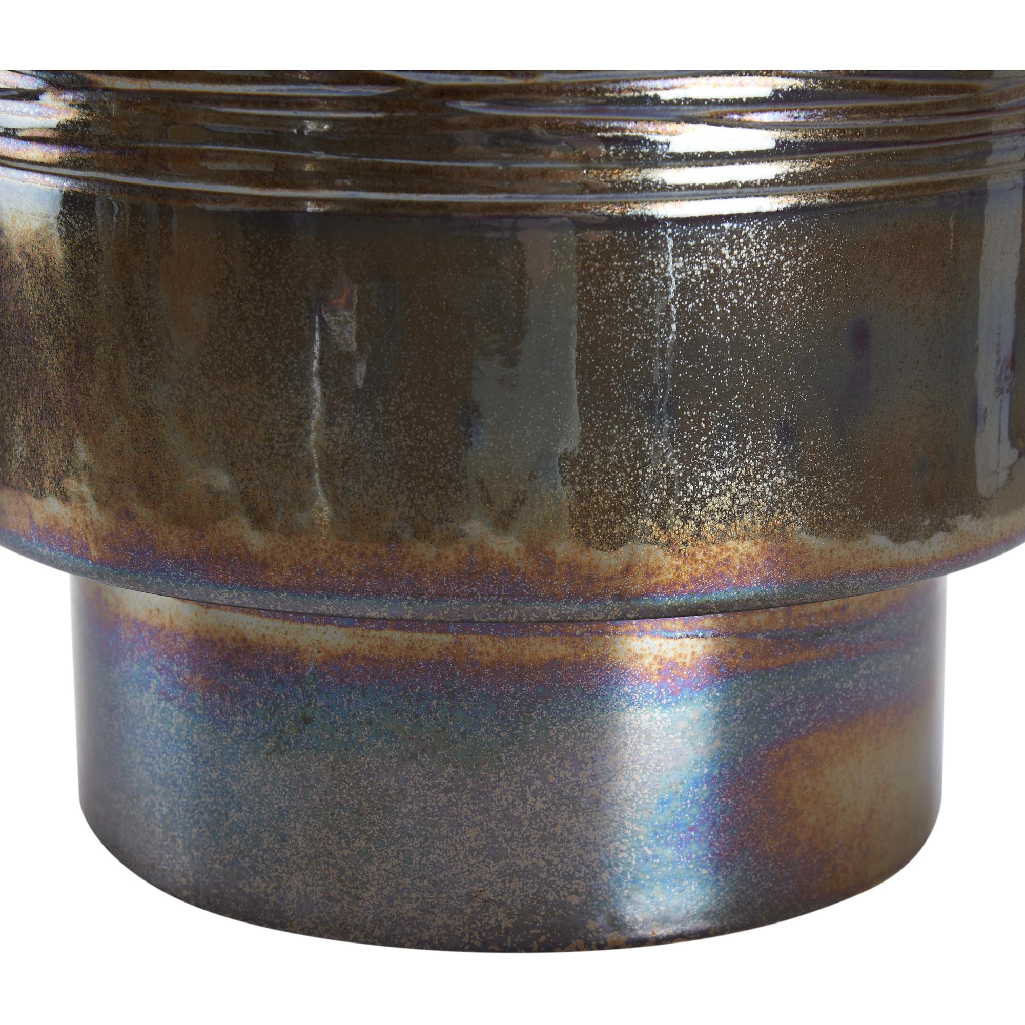 Handcrafted in ceramic and finished with a metallic reactive glaze, this vase is a study in refined artistry. The iridescent surface reveals one-of-a-kind variations, shimmering with depth and dimension that can only be achieved through expert kiln work. Both sculptural and functional, it brings a touch of understated luxury to any curated interior.
