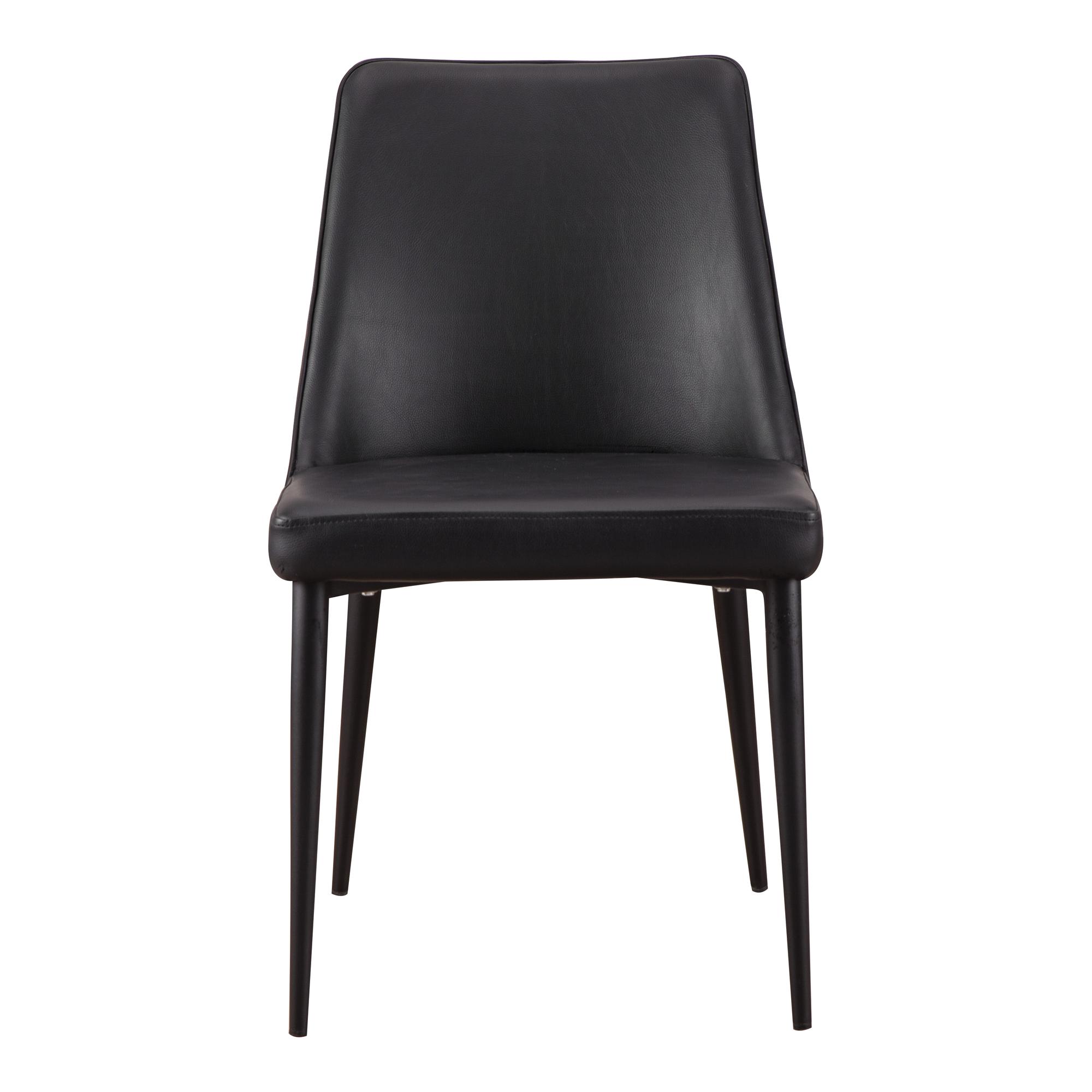 Dig into simplicity with the Lula dining chair. Sleek, easy-to-clean vegan leather upholstery offers contemporary cool, while a welcoming scooped seat provides plenty of comfort for family dinners. A sturdy iron frame with slim, tapered legs provides the final touches to this showstopping chair. An easy seat- bon appétit!