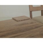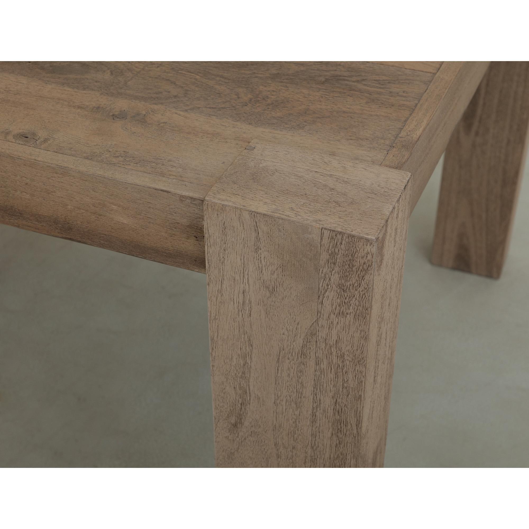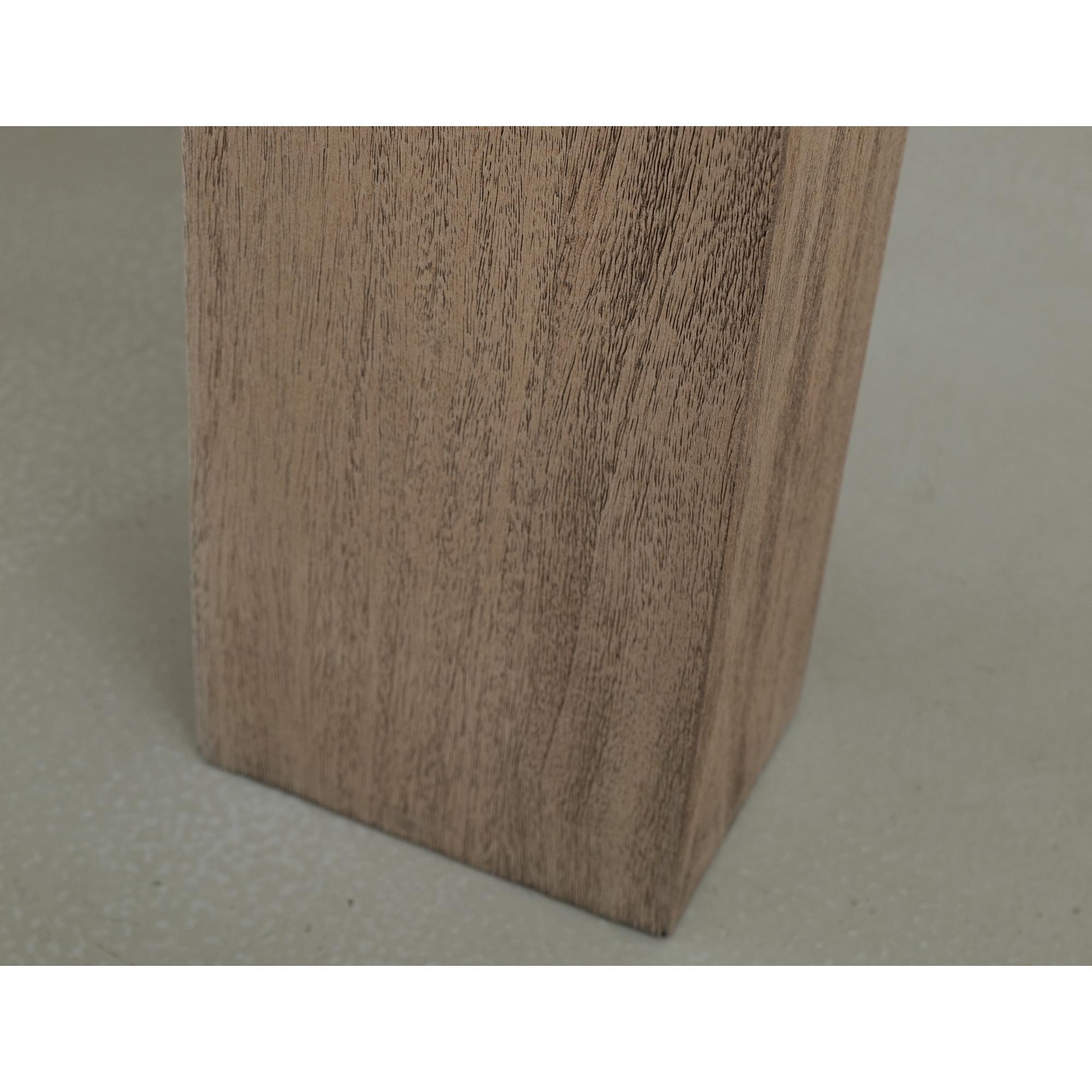 The Luma dining collection features a rectangular shape with clean, straight edges and a smooth surface. Its sturdy, thick legs have a rectangular design that perfectly complements the overall aesthetic. Made from Melina wood, it showcases a warm sand-brown finish, giving it a natural and earthy appearance. The combination of its solid construction and elegant simplicity makes it both functional and visually appealing.