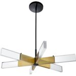 Add glamour to any space with this alluring chandelier. Crafted with a metal frame in a brass finish and completed with clear acrylic lamp shades. Made in India. With refined craftsmanship, this design was brought to life by skilled local artisans. Due to the nature of handcraftsmanship, unique imperfections such as fissures, markings and variations in colour and shape are welcomed and appreciated characteristics for a truly one-of-a-kind piece.