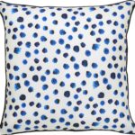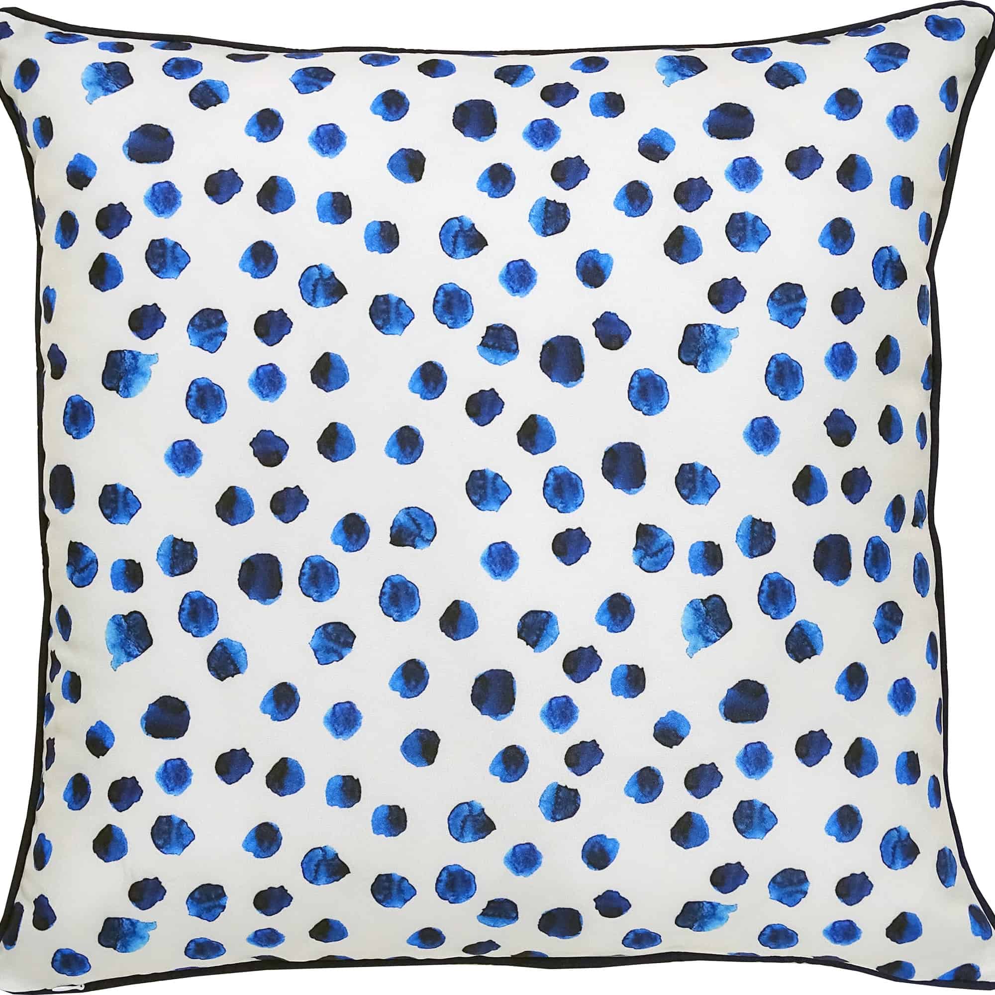 Watercolour-like polka dot patterns give this outdoor pillow a playful appeal. Against the sleek white backdrop, the royal and navy blue tones elevate the patio space.