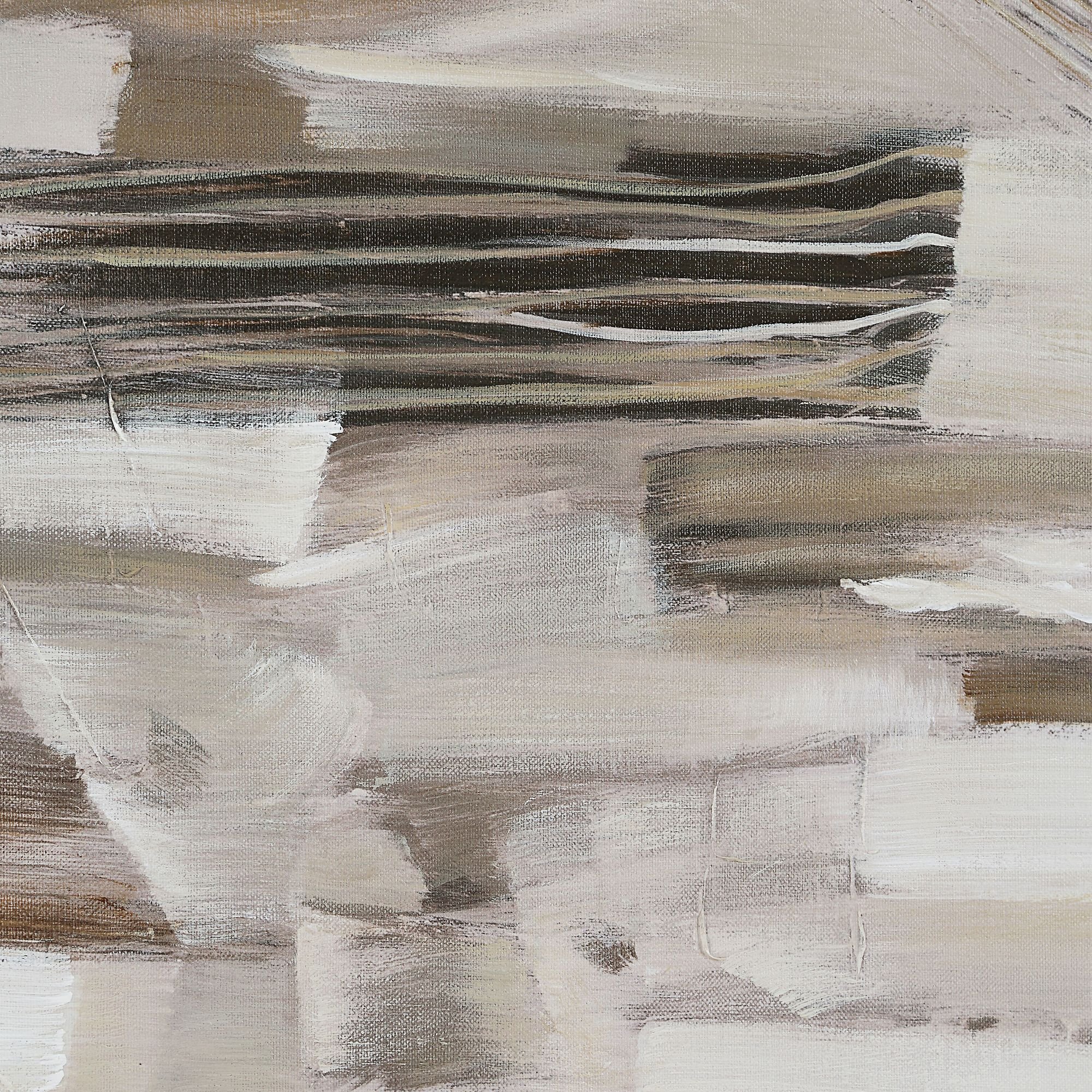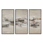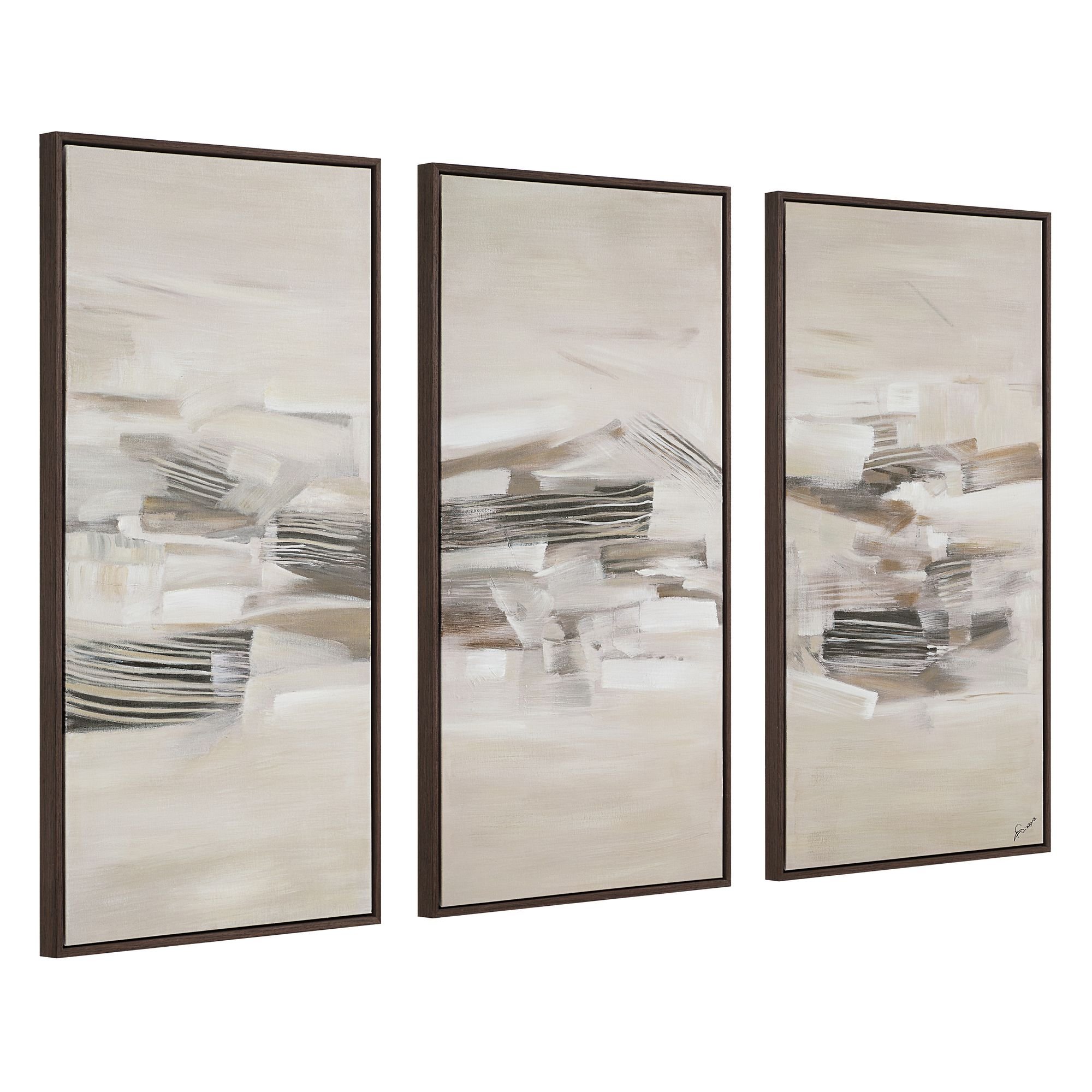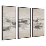 The beauty of triptych art is you can change the story it tells by simply changing up the way you display it. Painted in neutral hues with broad brushstrokes that capture motion and texture, this trio of black oak-framed canvases offers style and beauty to elevate any modern interior whether you feature them side by side or stacked.